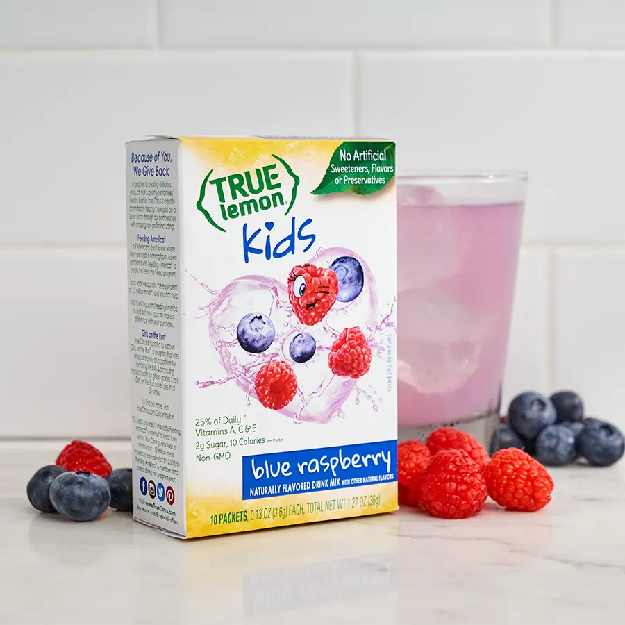 I order the Blue Raspberry Kids and the Grape Kids for myself because it has less citric acid in it and doesn’t upset my stomach. Makes drinking water more enjoyable.
