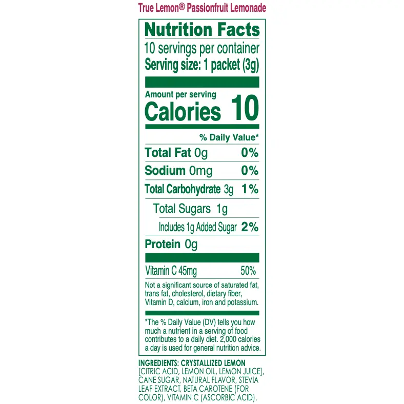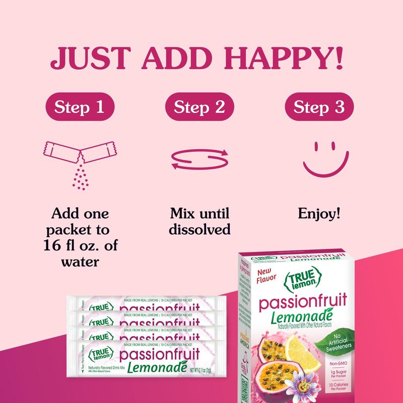 Sip your way to a tropical passionfruit lemonade escape. Made with real lemon juice and oils, and a sweet, tart passion fruit flavor, our True Lemon Passionfruit Lemonade adds a burst of exotic delight to your water. No matter where you are, it’s your ticket to paradise.