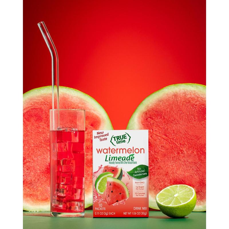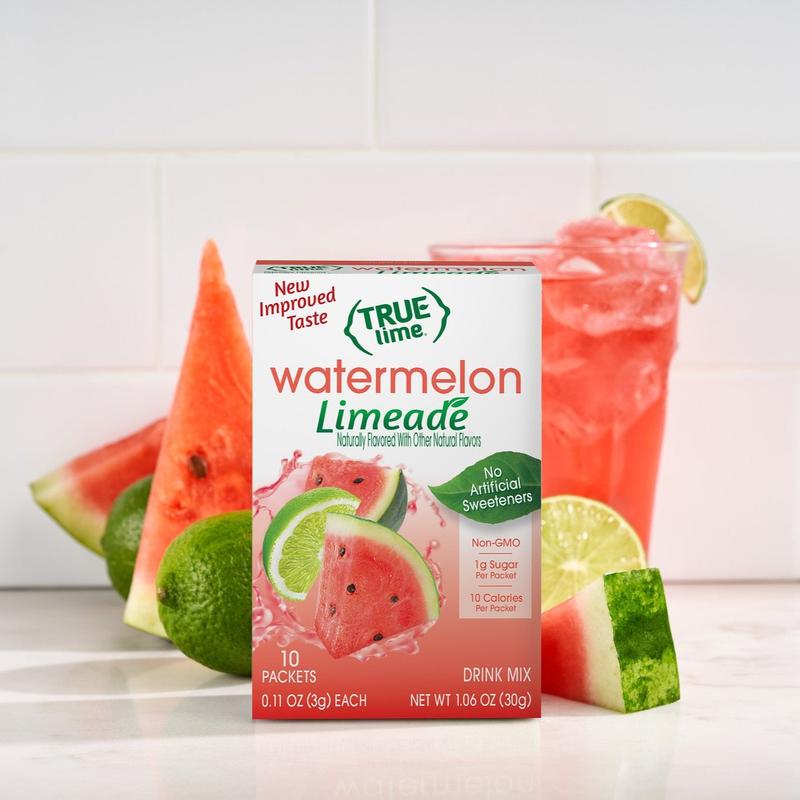 I stopped drinking sodas a few years ago. I missed the carbonation and tried different drink additives. True Lime Watermelon Limeade, is the best by far mixed with club soda…
