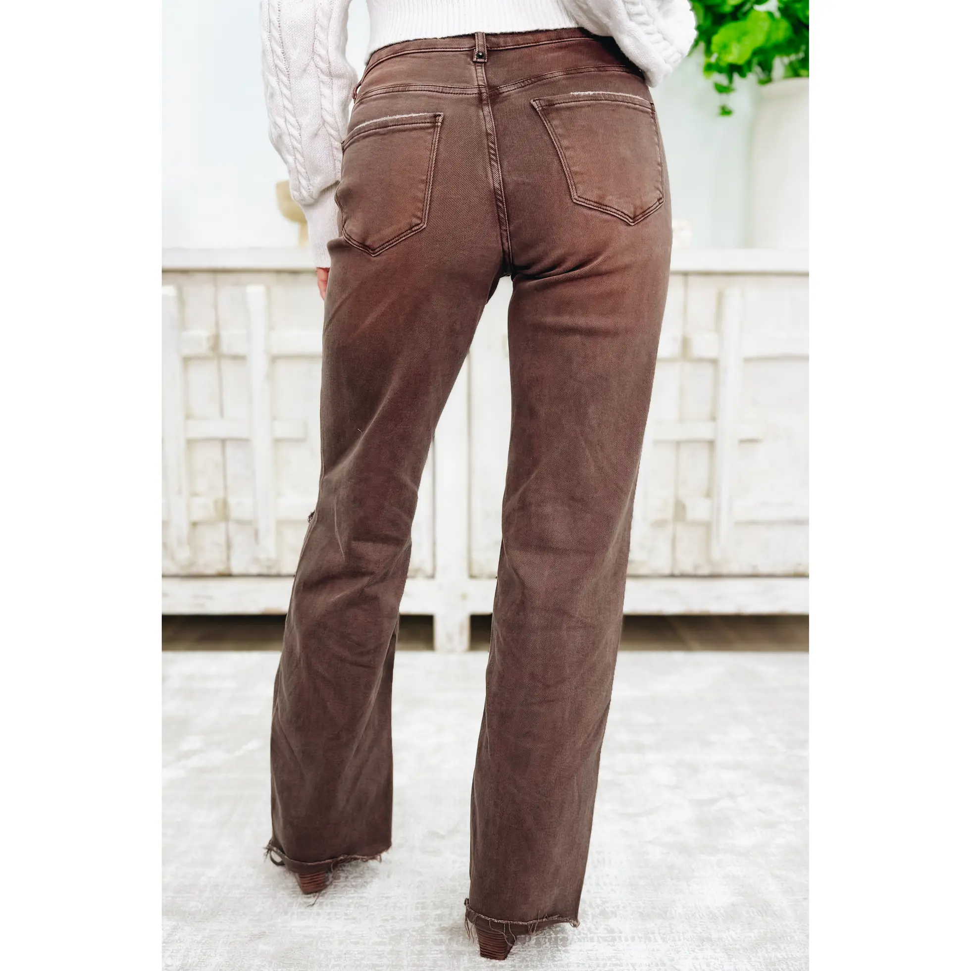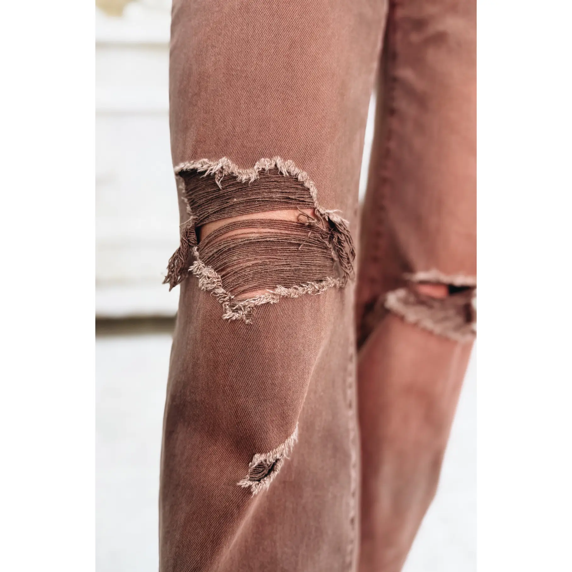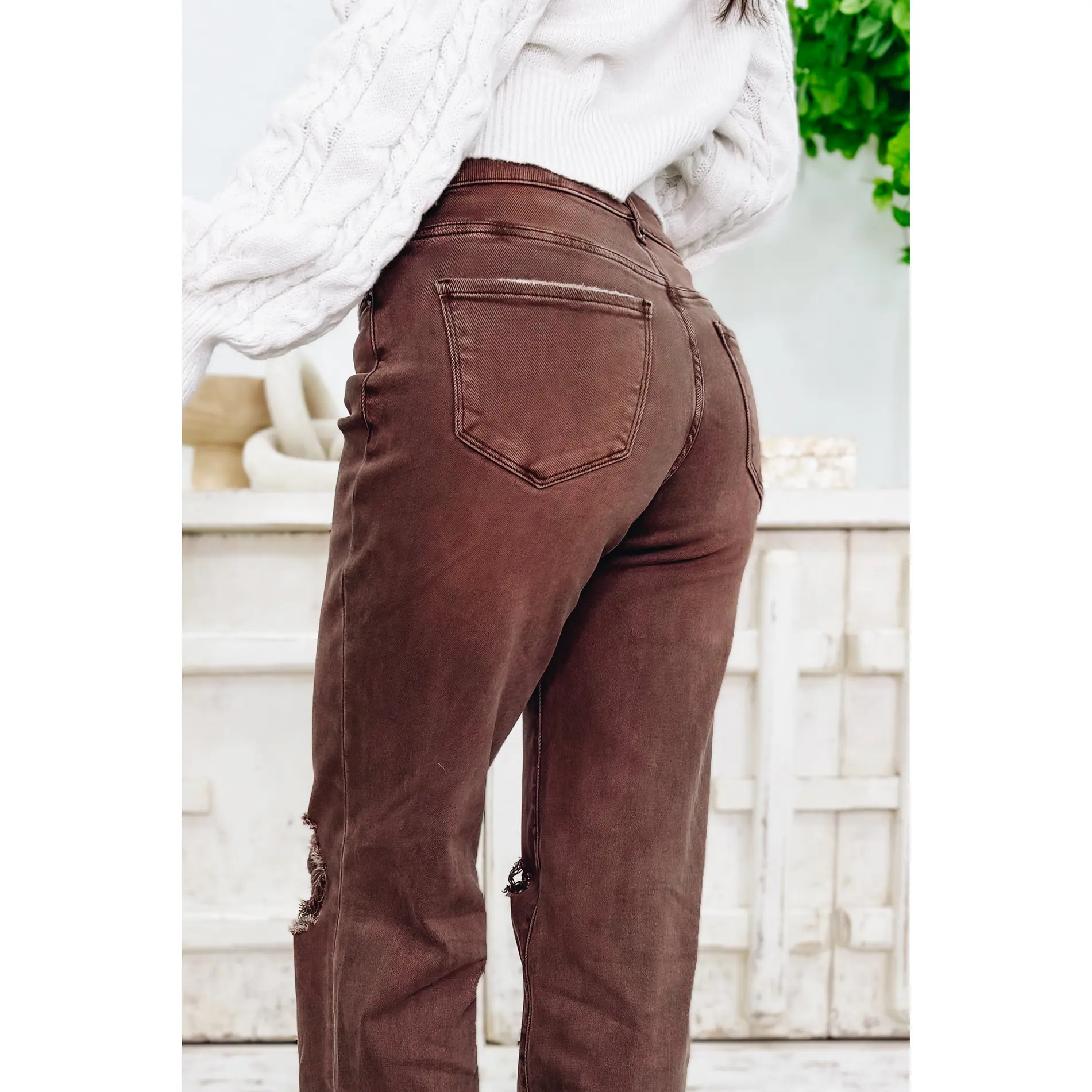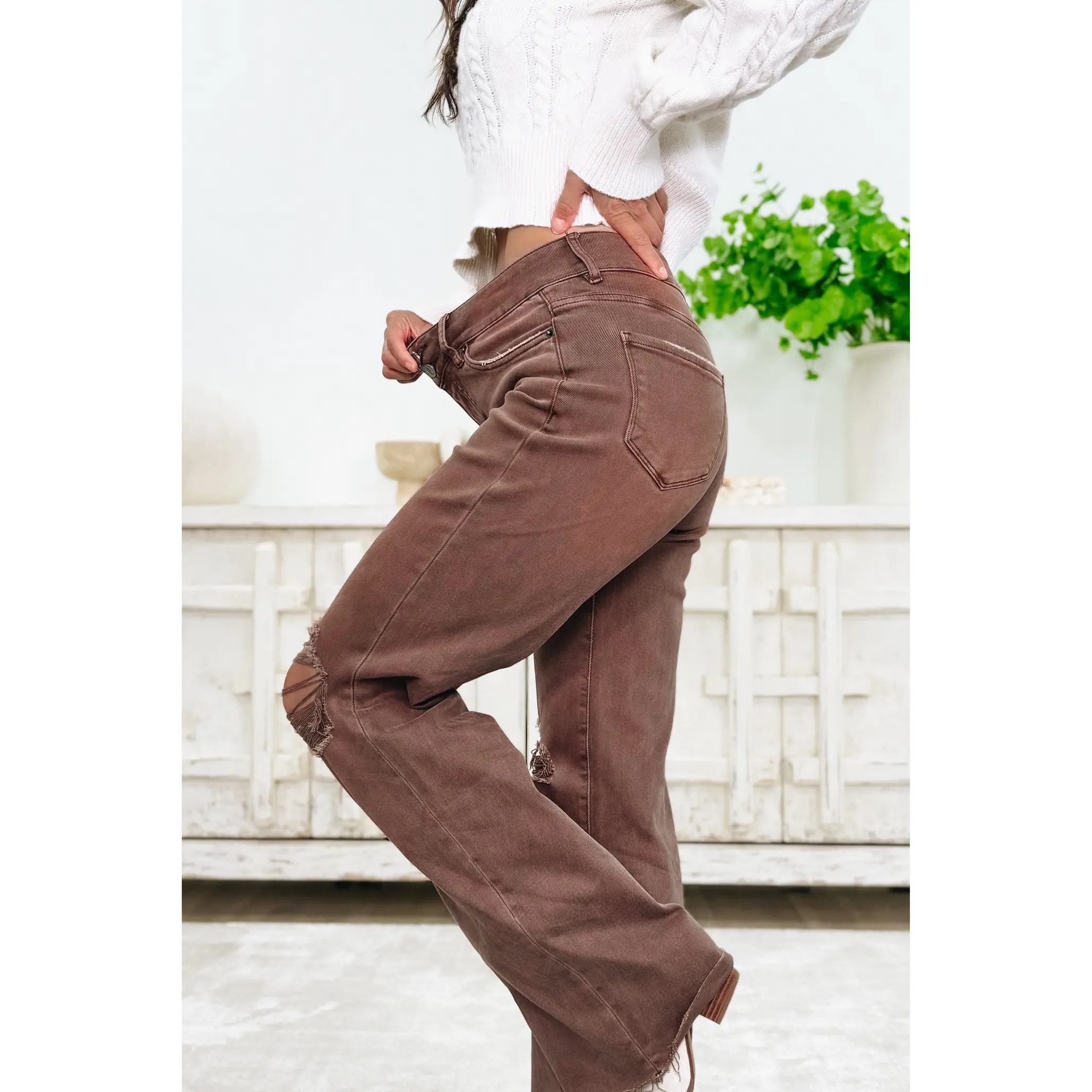 Step up your denim game with these amazing brown high-rise double button wide leg jeans by BAR Denim Label. Designed with built-in tummy control, they smooth and hold you in all the right places while keeping you comfy all day long. The rich brown wash paired with perfectly placed distressing makes them a total standoutâequal parts trendy and timeless. These wide-leg beauties are the fall dream jeans youâll live in, but trust us, theyâre perfect for every season. Chic, flattering, and insanely versatileâyour new go-to pair has arrived!