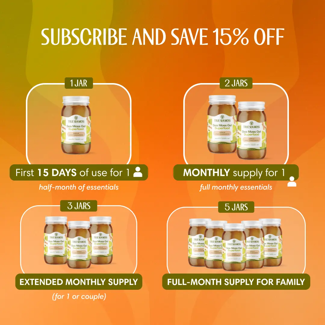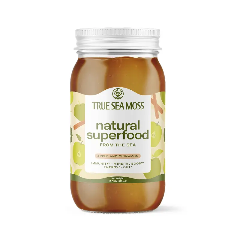 Introducing TrueSeaMoss Apple Cinnamon Sea Moss Gel—a delightful blend of wildcrafted Irish sea moss, crisp apple, and warm cinnamon, crafted to enhance your wellness journey.