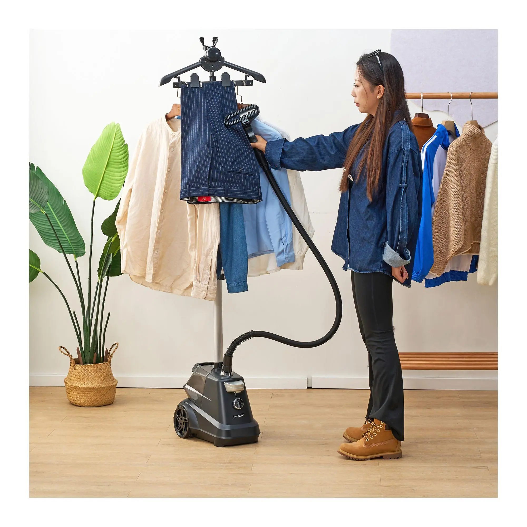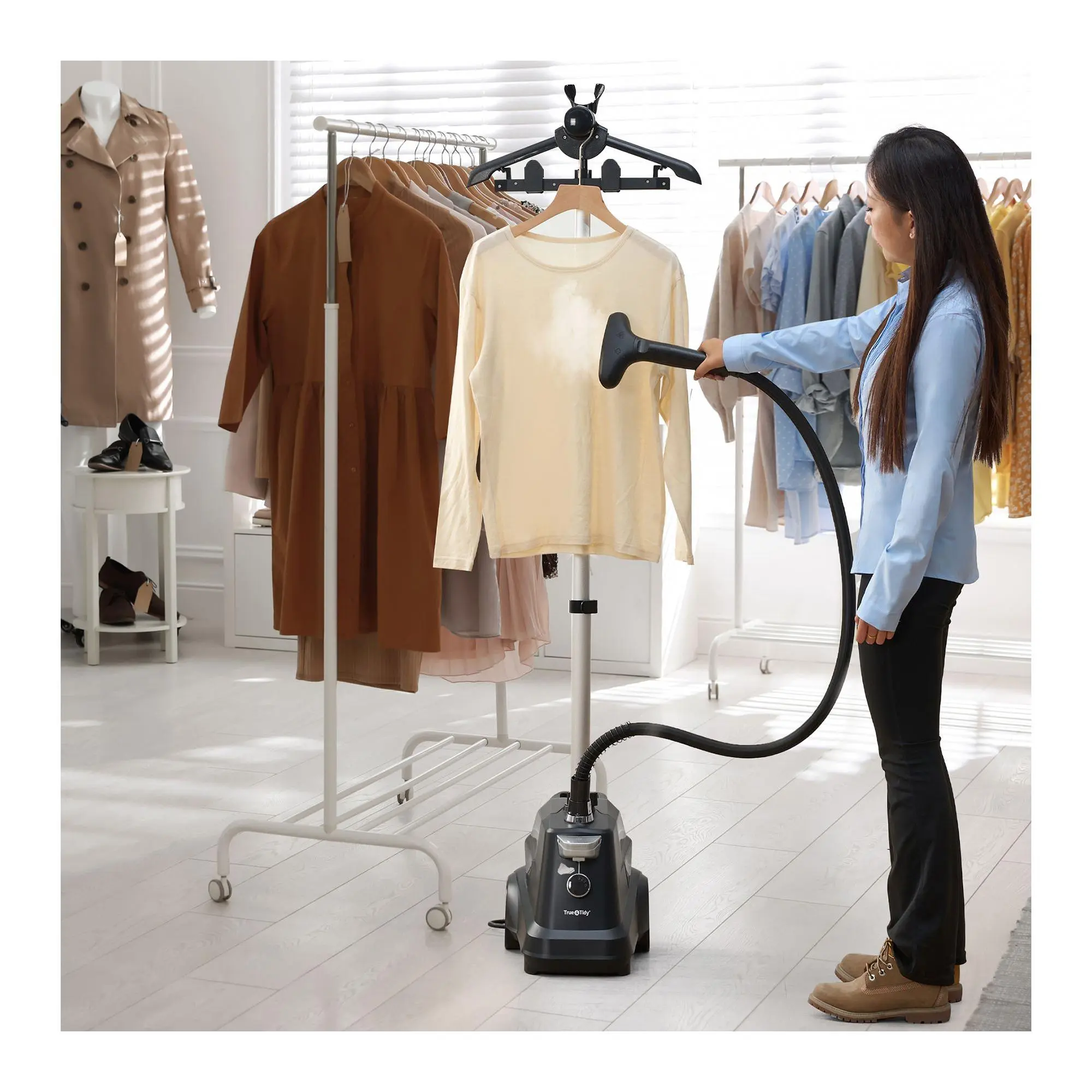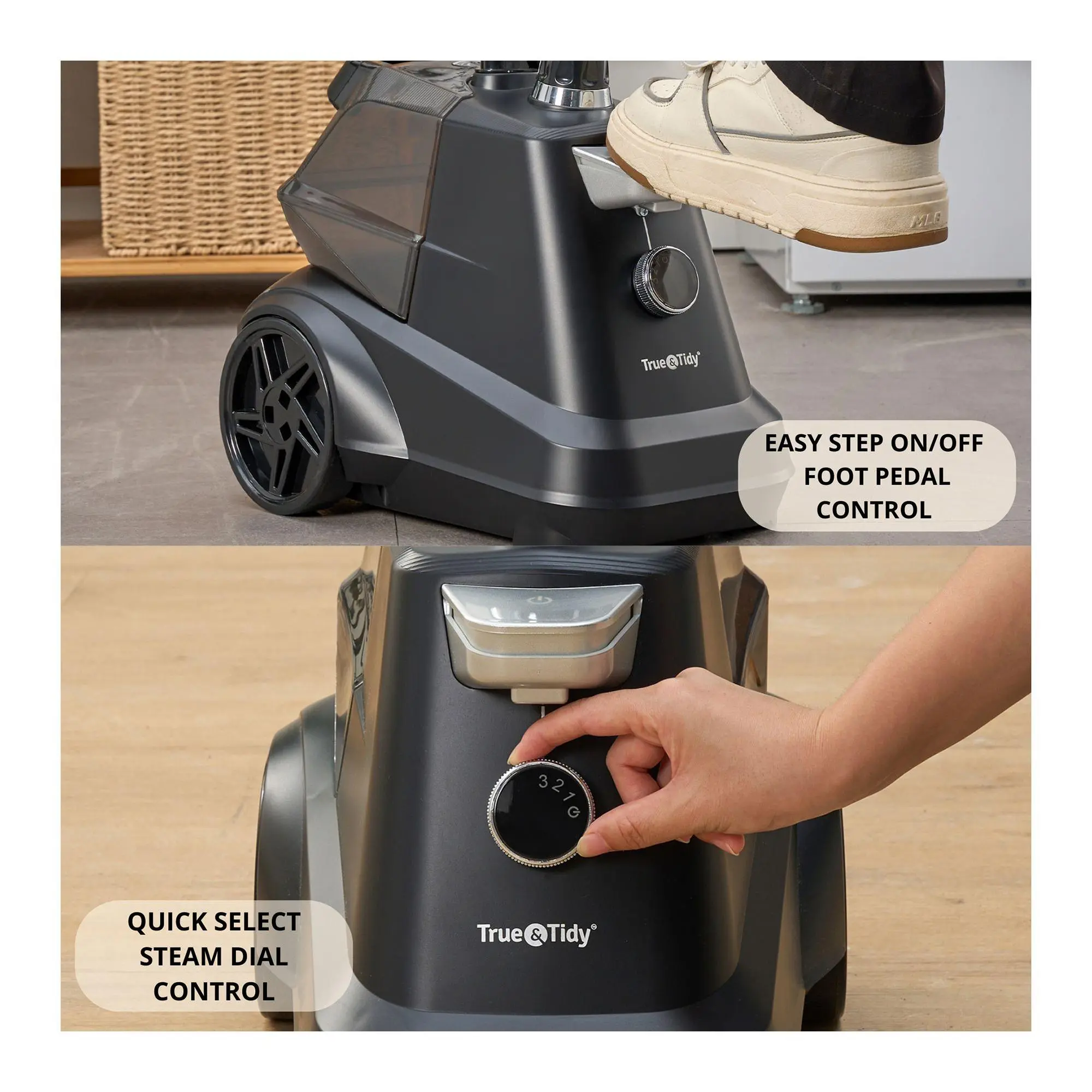 Make steaming clothes a breeze with the True & Tidy SX3 Pro Commercial Garment Steamer. Featuring an easy-to-use foot pedal power control and a heavy-duty aluminum plated steam nozzle, this high-performance steamer is perfect for all your garment care needs. From True & Tidy.