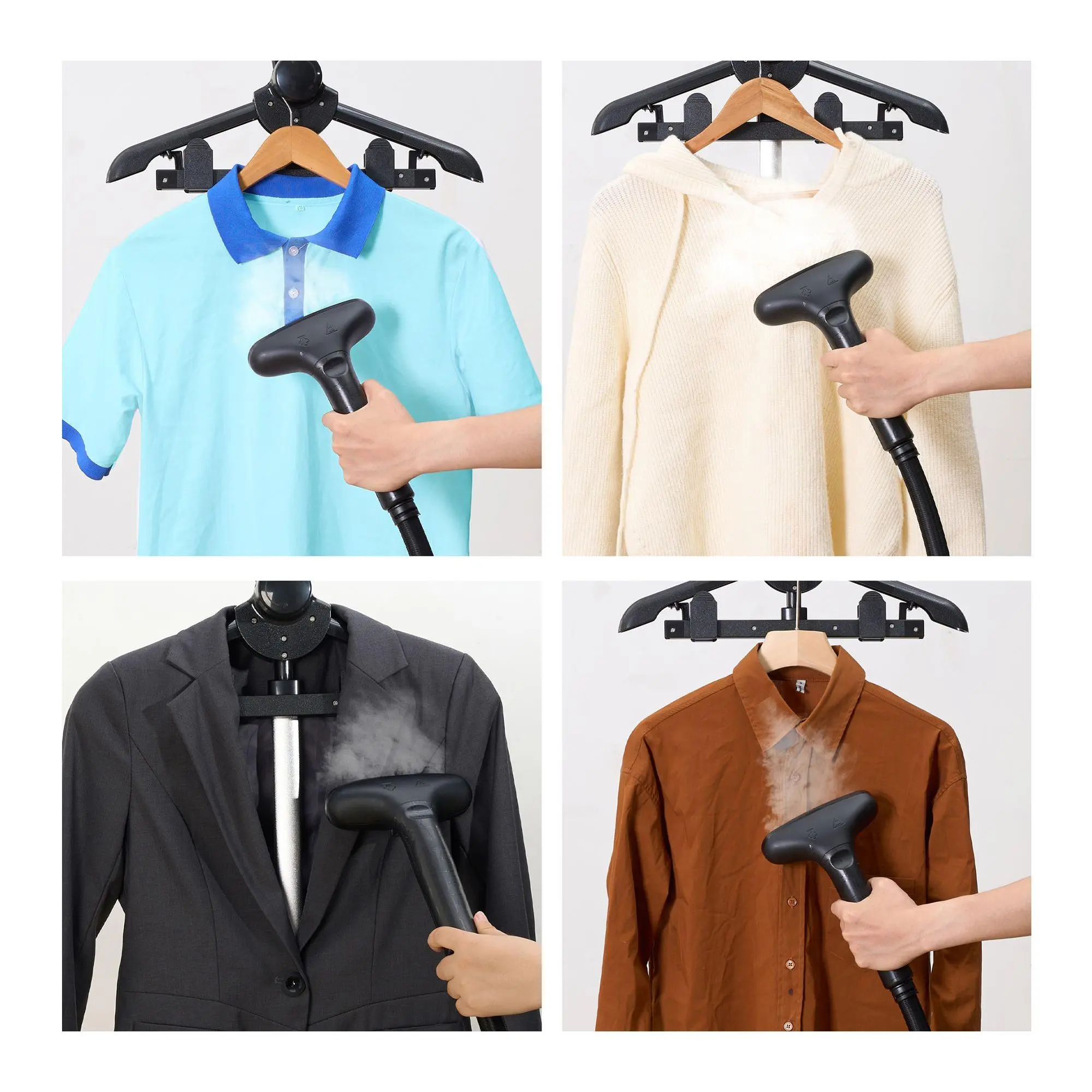 ·Includes SX3 Pro Commercial Garment Steamer with Foot Pedal Control and Steam Selection Dial, fabric brush, pants press attachment, and two hanger clips