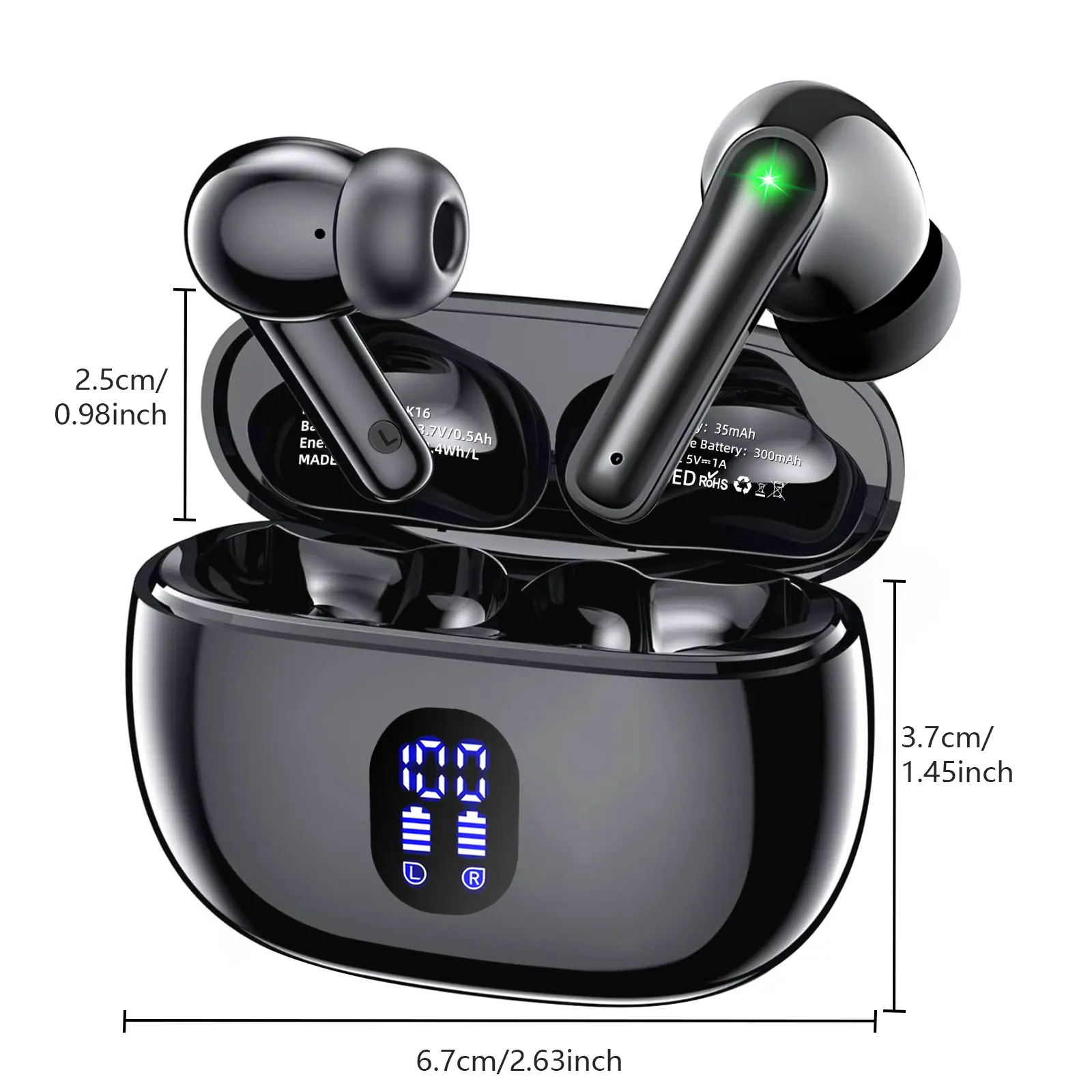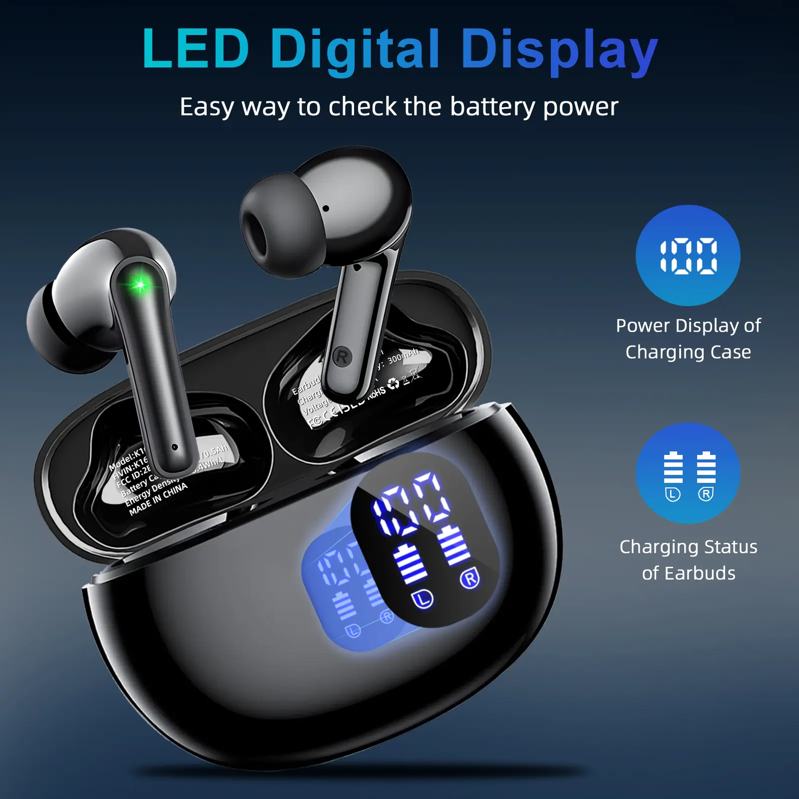 ·Real-Time LED Power Display: Front-facing screen provides precise battery status for both earbuds and charging case