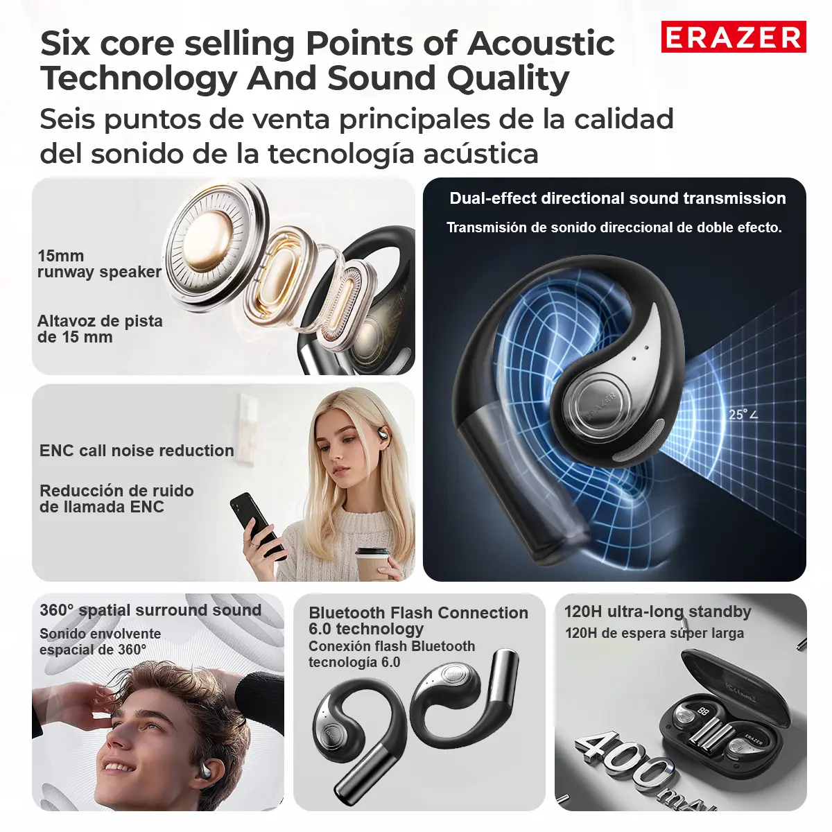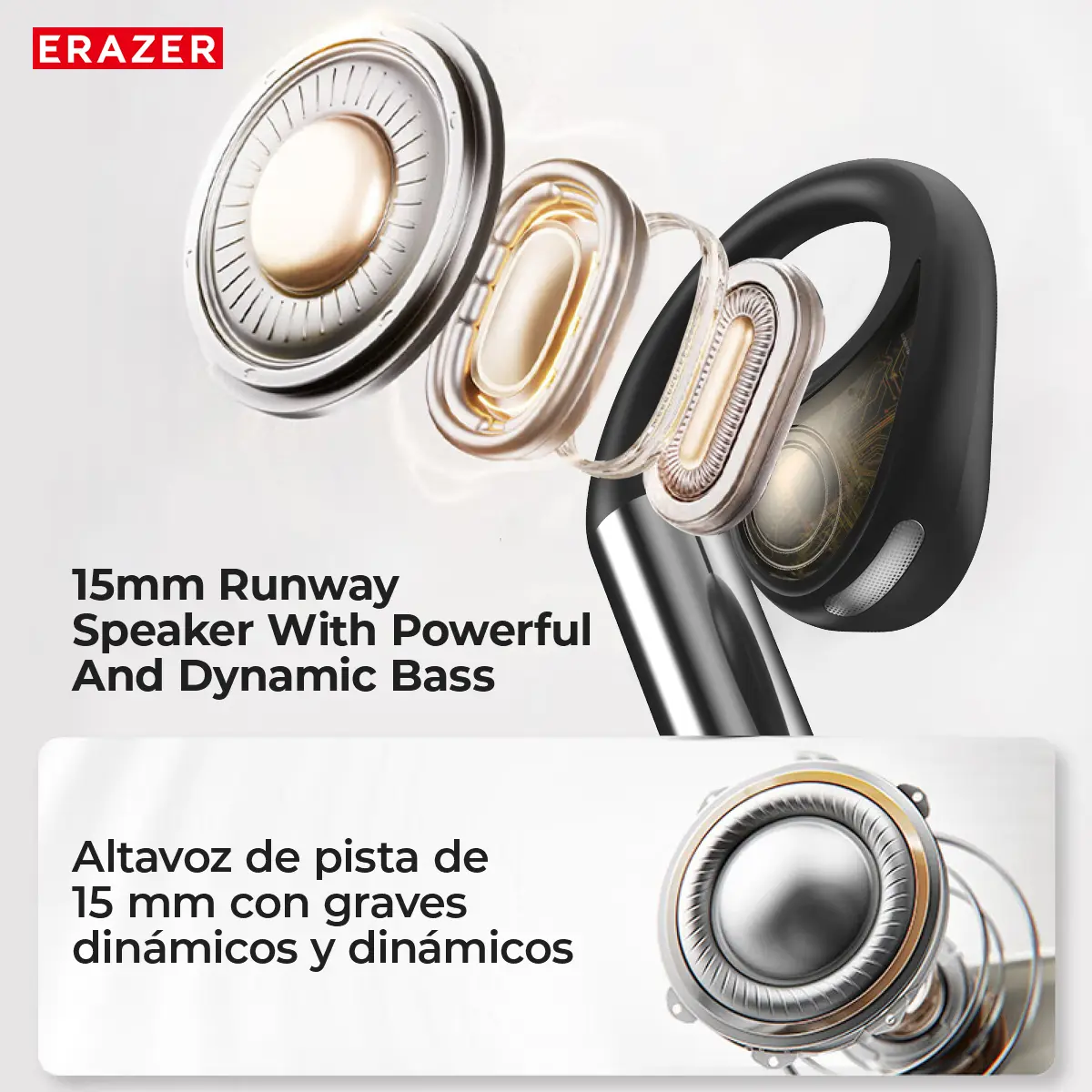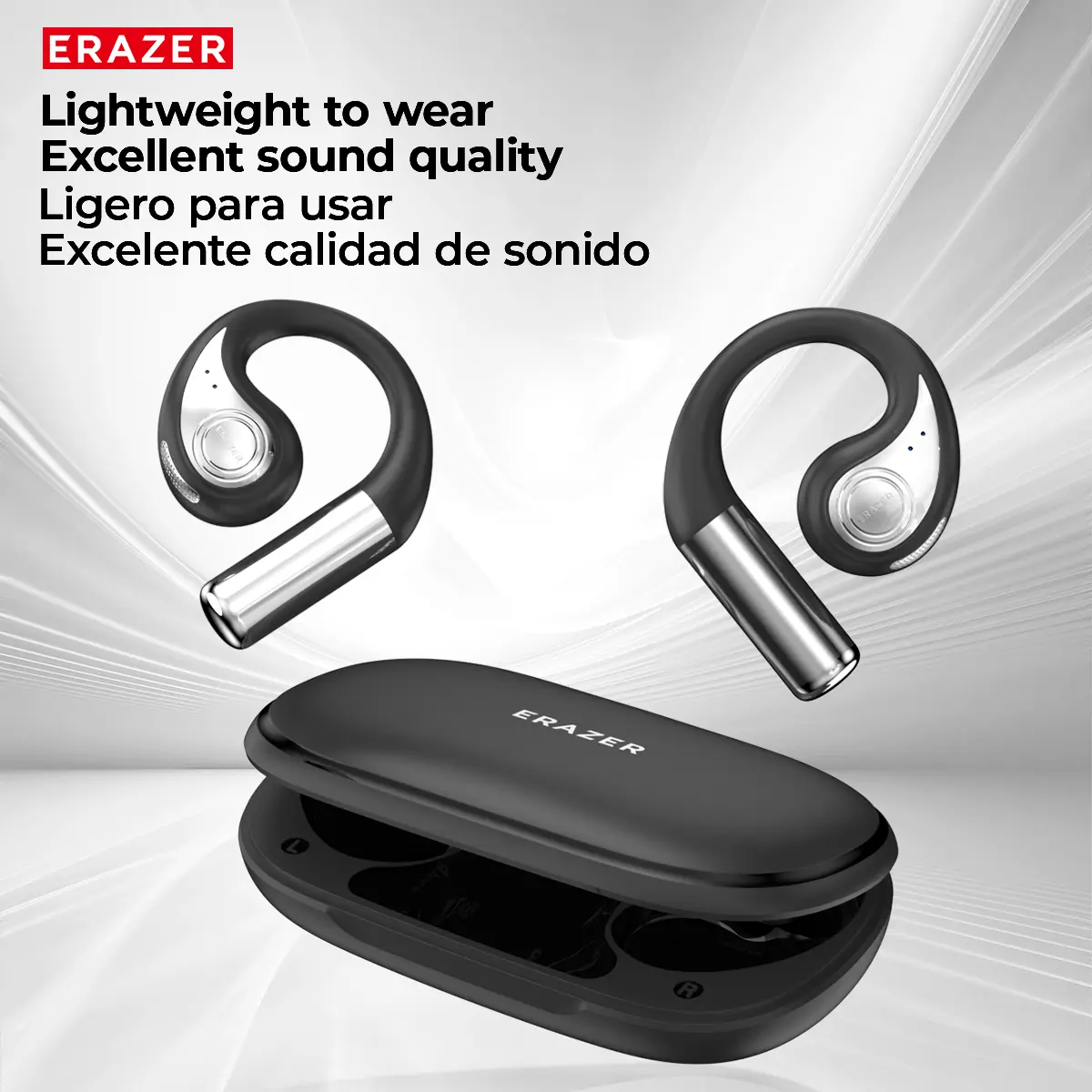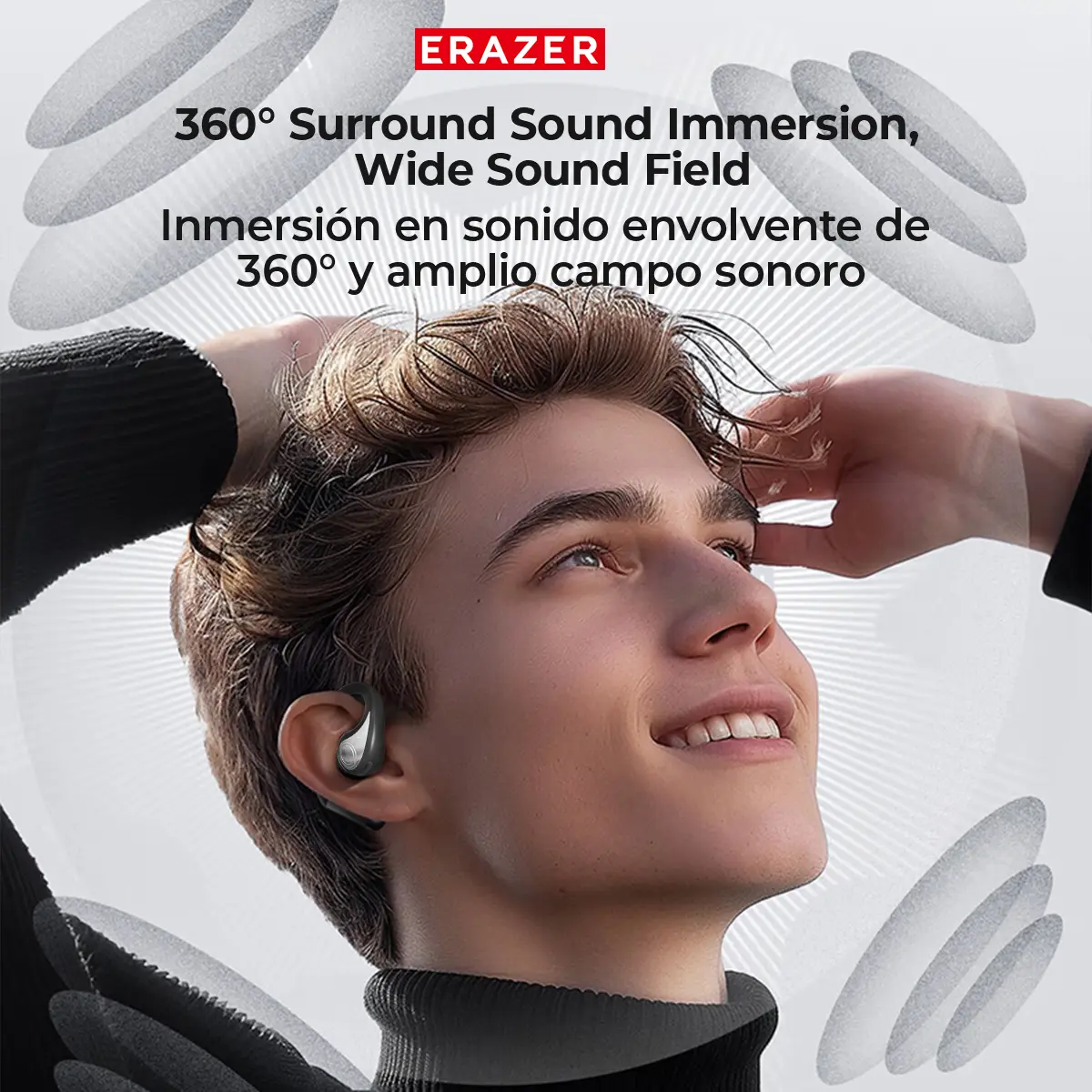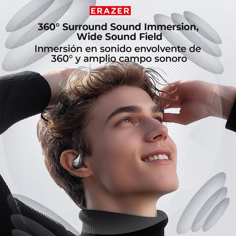 Ever wish you could listen to your favorite tunes and still hear what's going on around you? The ERAZER XP9 OWS True Wireless Earphones deliver just that with their fully open-ear hook design, perfect for staying safe outdoors. Whether you're jogging, commuting, or gaming, these bone conduction headphones offer dynamic bass and 360° surround sound for an immersive experience without blocking your ears.