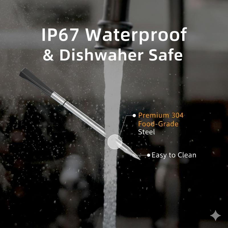 ·IP67 Waterproof & Durable: Made with food-grade 304 Stainless Steel. Easy to clean under running water (dishwasher safe probe).