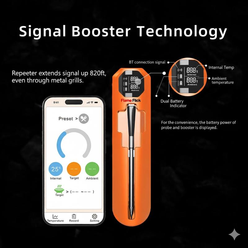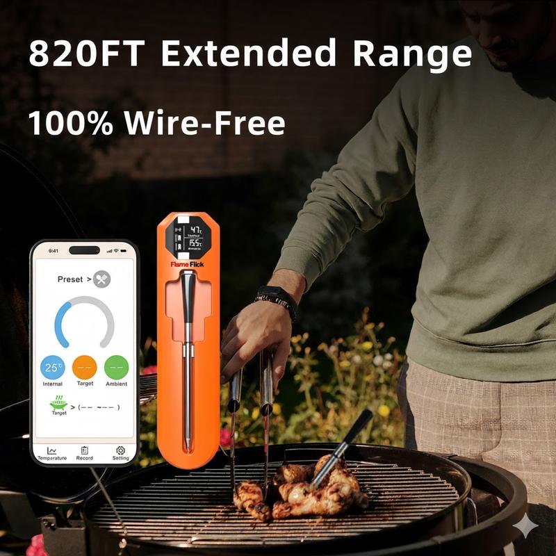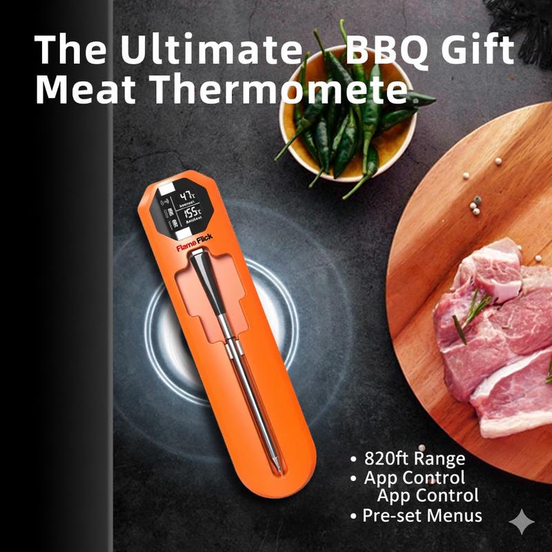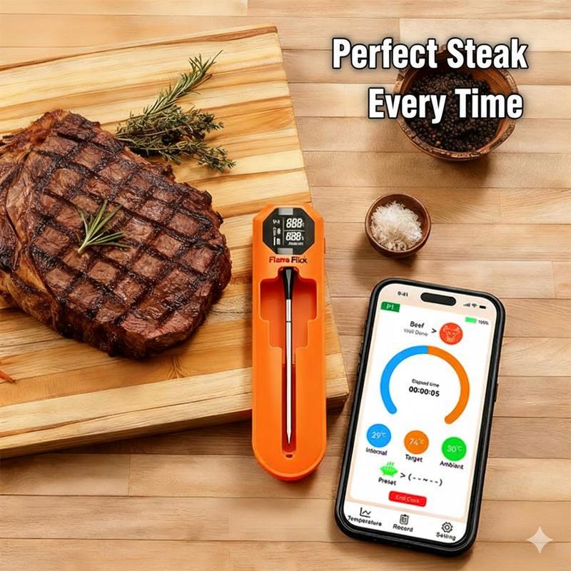 Stop Guessing, Start Grilling Like a Pro! Tired of overcooked dry steak or constantly checking the oven? Meet the Flame Flick Wireless Meat Thermometer—the ultimate game-changer for your BBQ parties and holiday dinners!