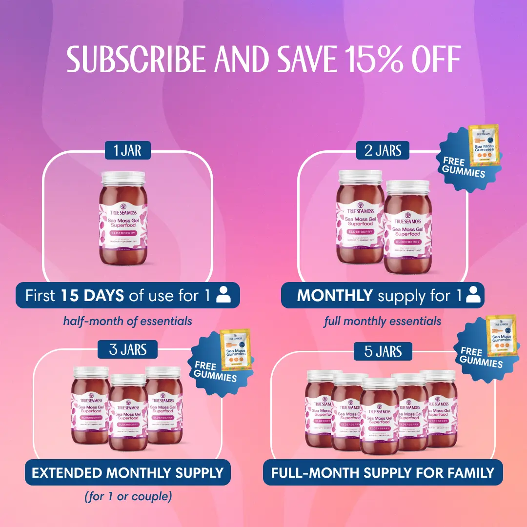 Supports detoxification and digestion with prebiotic fibers. Elevate your daily health regimen with TrueSeaMoss Elderberry Sea Moss Gel. You may notice a light, ocean-like aftertaste โ a sign of real, natural Sea Moss.