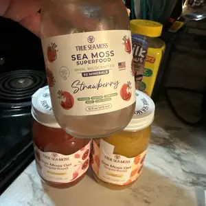 • Flavor: Sweet, tangy strawberry.• Ingredients: Purified water, sea moss, strawberry, lime, monk fruit, ascorbic acid.• Benefits: Promotes skin health, energy, and immune support.