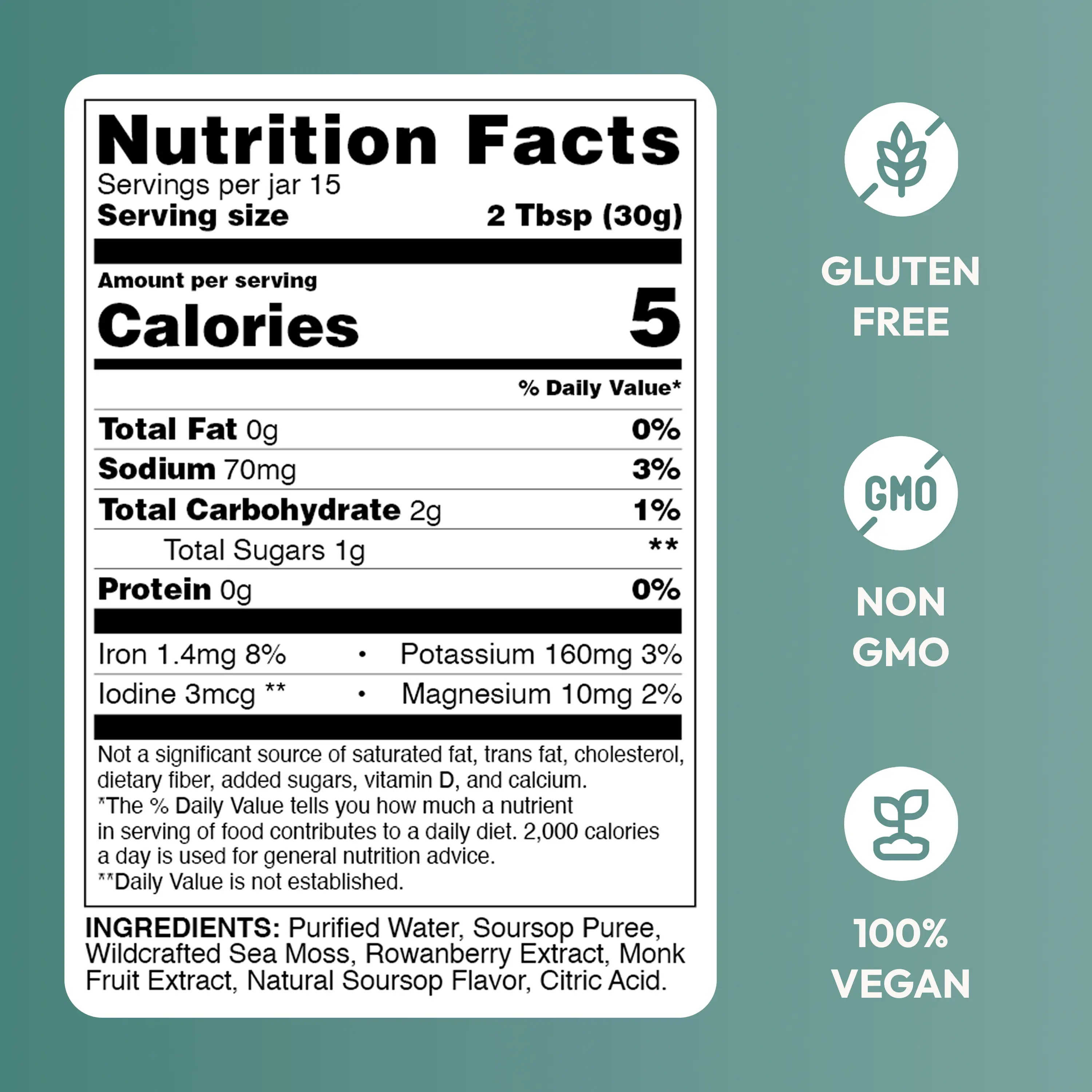 • Ingredients: Purified water, wildcrafted Irish sea moss, fruit puree, monk fruit juice concentrate, and ascorbic acid.