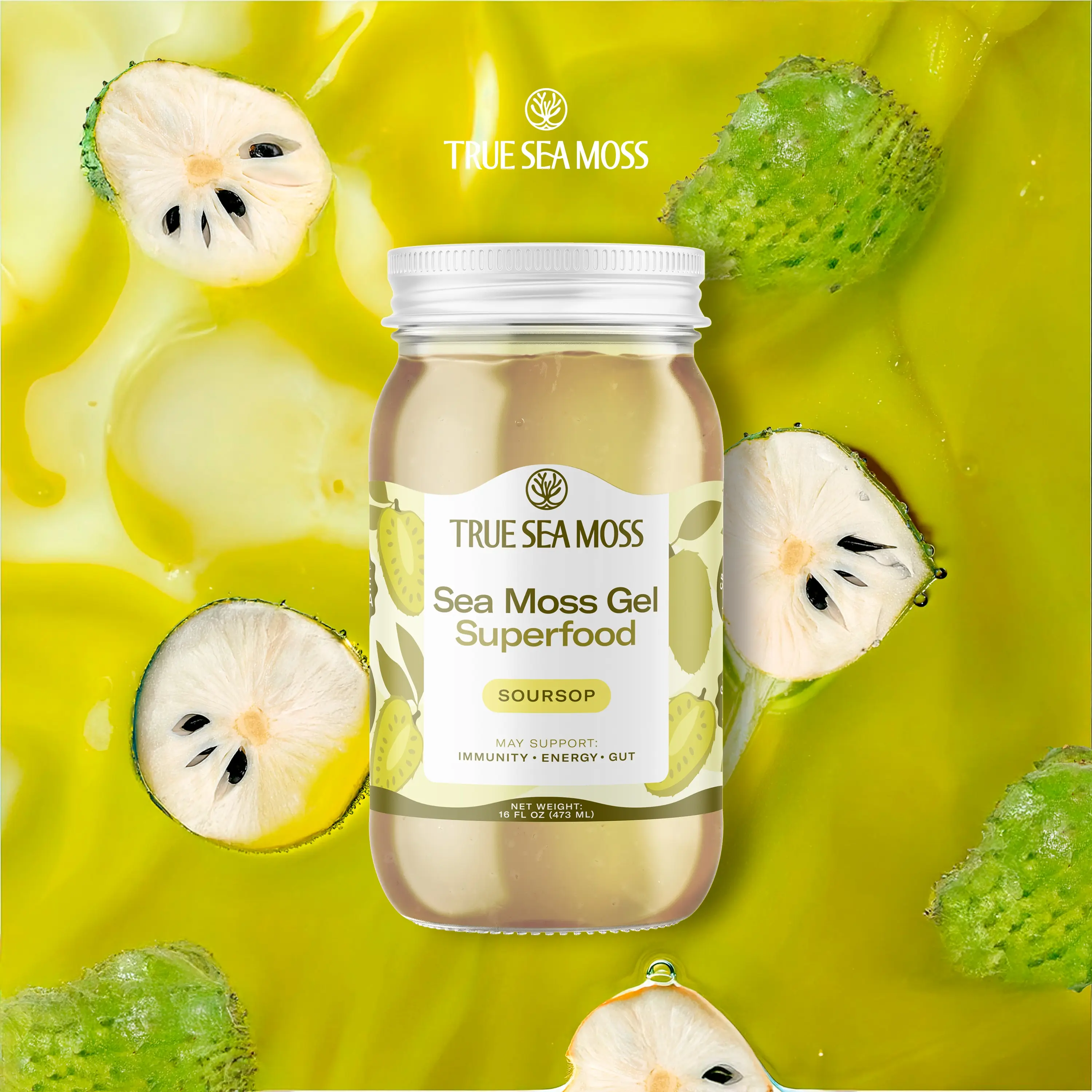 Indulge in the natural fusion of True Sea Moss Soursop Sea Moss Gel.