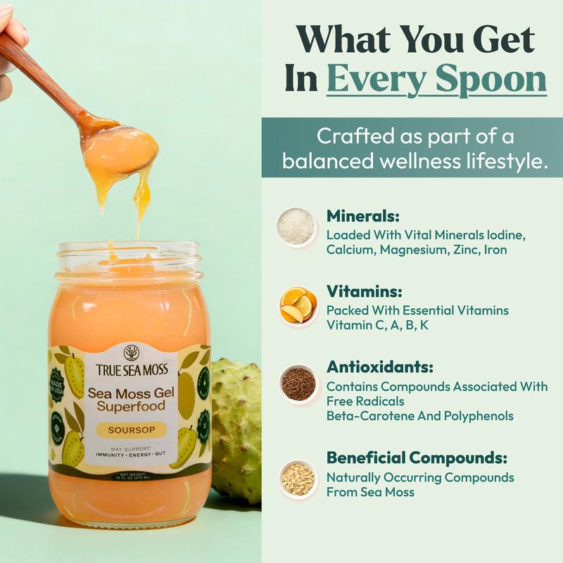 Elevate your daily health regimen with the delectable and nourishing True Sea Moss Soursop Sea Moss Gel. Experience the synergy of sea moss and tropical soursop in every spoonful, and embrace a healthier, more vibrant you.
