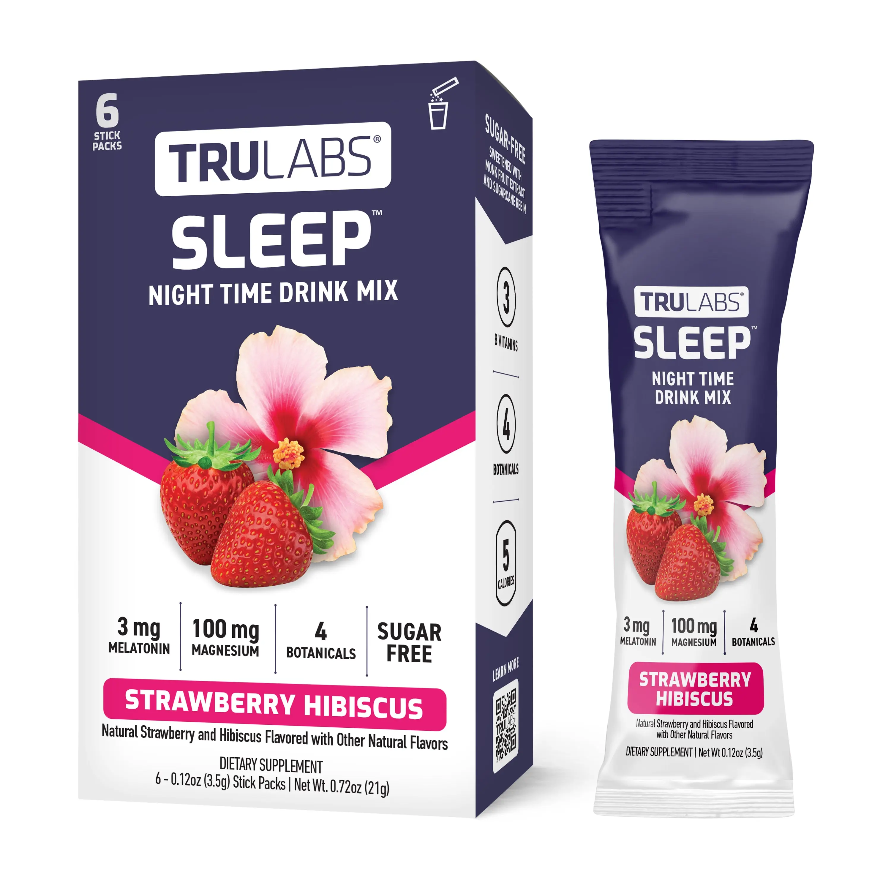 Support your natural sleep cycles with TruLabs Sleep, now in Strawberry Hibiscus flavor and boosted with 100 mg magnesium. Our improved formula combines 7 key ingredients designed to help you unwind, relax, and sleep deeply—without sugar, artificial additives, or habit-forming ingredients.