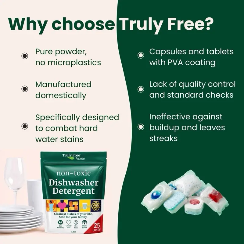 This is the ONLY non-toxic dishwasher detergent that works! Iāve tried them all. My husband was ready to get a new dishwasher, then I found this. It leaves my glassware spotless.
