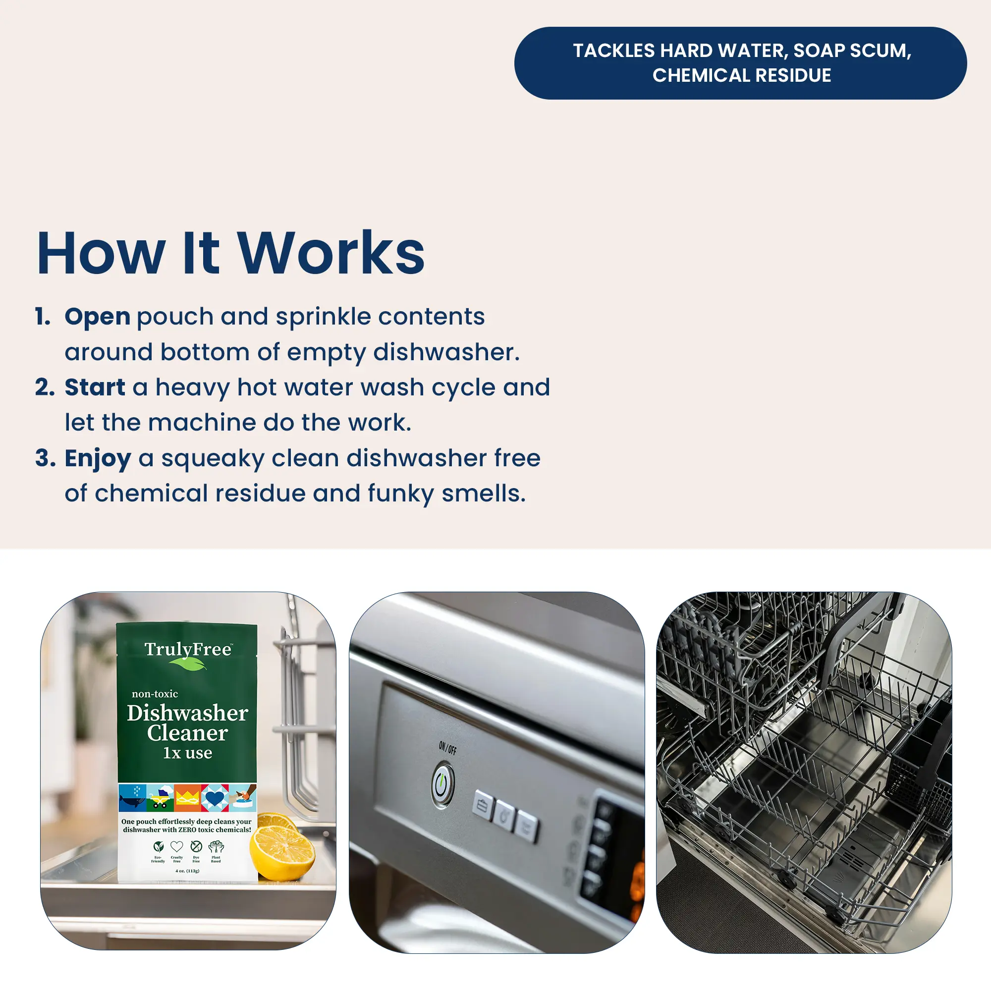 The dishwasher cleaner has improved the effectiveness of my dishwasher so much! There is no more funny stains on my glasses when it’s done washing!