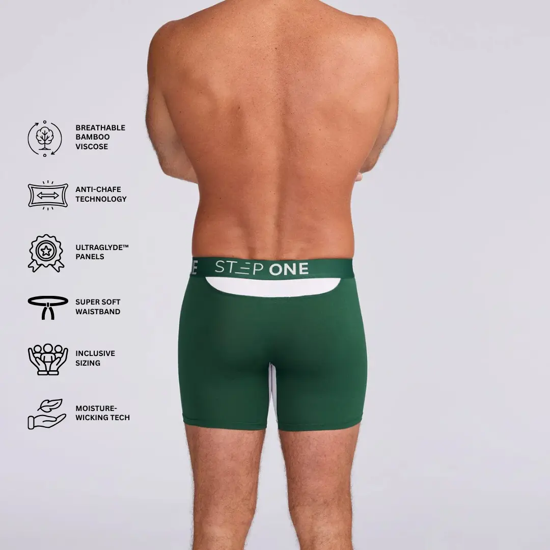 Step One Men's Trunk - Green & White, Anti-Chafe, Breathable Bamboo Fabric, UltraGlyde Panels, Hidden Elastic Pouch, Premium Underwear, Athletic Daily wear