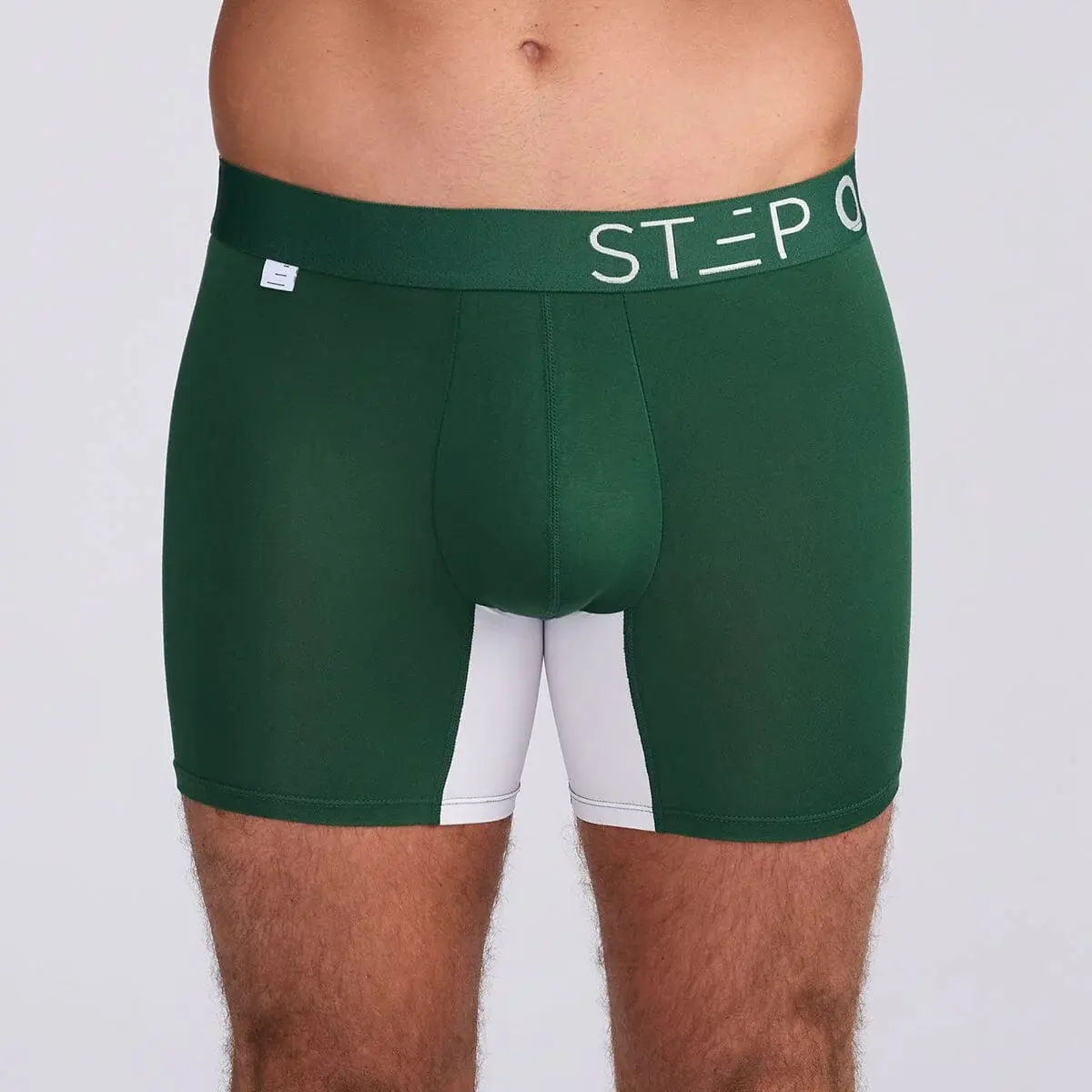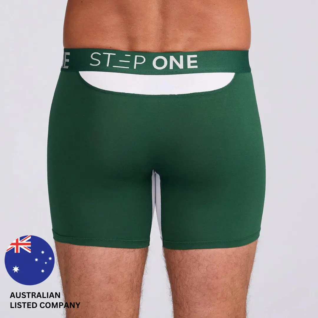 5. Step One Men's Trunk - Green & White, Anti-Chafe, Breathable Bamboo Fabric, UltraGlyde Panels, Hidden Elastic Pouch, Premium Underwear, Athletic Daily wear