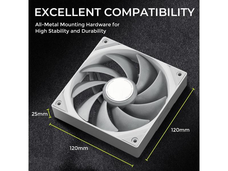 Ideal for enthusiasts and professionals alike, the TRYX ROTA PRO 120 White case fan is the epitome of high-performance cooling, ensuring your system remains cool, quiet, and reliable.