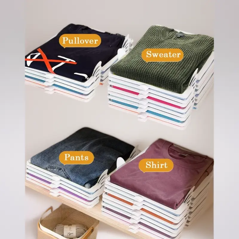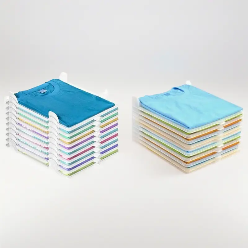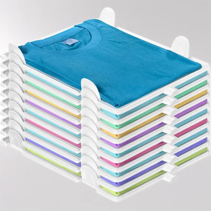 Tired of messy, unorganized shirts piling up in your closet?Our 10 Pack Tshirt Organizers are designed to transform chaos into order-perfect for bedrooms, dorms, or any space where you need to keep your clothes tidy and accessible!###✅**Stackable Design, Maximum Space Savings** Each organizer is lightweight yet sturdy, making stacking a breeze.Stack 2, 3, or all 10 to create vertical storage that fits seamlessly into your closet.No more wasted space on top shelves-use the height to store more shirts, sweaters, or even folded pants!###✅**Easy Access Shirt Folder Board** No more struggling to fold shirts perfectly!Our built-in folder board ensures every shirt, polo, or button-down is folded to a uniform, compact size.Simply slide your shirt into the board, fold along the pre-marked lines, and snap it closed-done in seconds, even for beginners!###✅**Sturdy, Durable & Built to Last** Crafted from high-quality non-woven fabric, these organizers are tear-resistant and breathable.The reinforced edges and secure fasteners keep your shirts in place, while the lightweight material won’t weigh down your closet rods.Unlike flimsy plastic bins, they’re flexible enough to adjust and durable enough to handle daily use.###✅**Versatile for Any Closet** From dress shirts to casual tees, workout gear to formal blouses-these organizers work for every type of shirt!The clear design lets you quickly see what’s inside, so you can grab the right shirt in seconds.No more digging through piles or searching for that favorite top!###✅**Simple to Clean & Reuse** Spilled coffee or dust?No problem!Just wipe the surface with a damp cloth, and it’s good as new.The reusable design means you can use these organizers year after year, making them a smart, long-term storage solution for students, busy professionals, or anyone who loves a clutter-free space.###📏**Dimensions (Each Organizer):** Perfectly sized to fit standard shirt sizes, with enough space to hold 5-7 shirts per organizer (depending on thickness).The stackable design ensures they nest together when not in use, saving even more space!###🌟**Why Choose Our Tshirt Organizers? ** - **Saves Time:** No more folding struggles-quickly organize shirts in minutes! - **Maximizes Space:** Stackable design fits into tight closet spaces. - **Durable Quality:** Built to withstand daily use, season after season. - **Clear & Visible:** Easy to find the shirt you want, when you want it. Tired of living with messy, unorganized clothes? Click "Add to Cart" now and turn your closet into a neat, efficient space-your future self (and your morning routine) will thank you! *Note: This pack includes 10 organizers. Each organizer features a shirt folder board and stackable design. Colors may vary slightly due to lighting. *