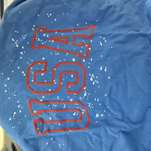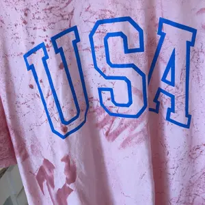 The shirt came wadded up in a poly mailer, most of the white specks(which is not much) are barely hanging on & some fell off. It doesn’t look like the advertising picture unfortunately.