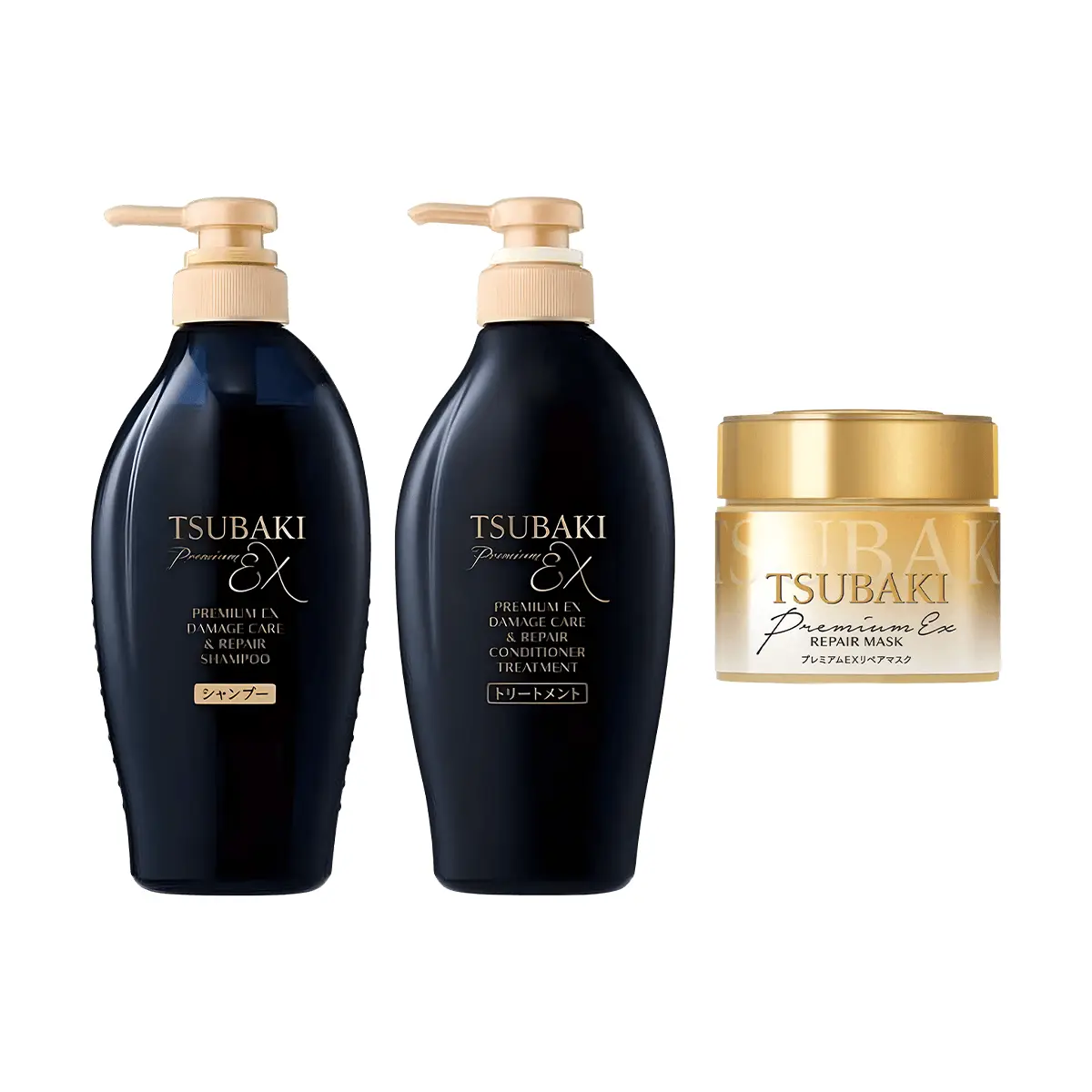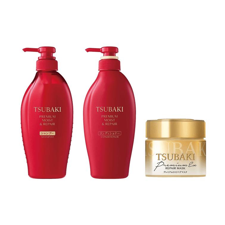·Includes 15.22 fl oz (450g) of SHISEIDO TSUBAKI Black Camellia Luxury Black Ion Repair Strong EX Shampoo and Conditioner.