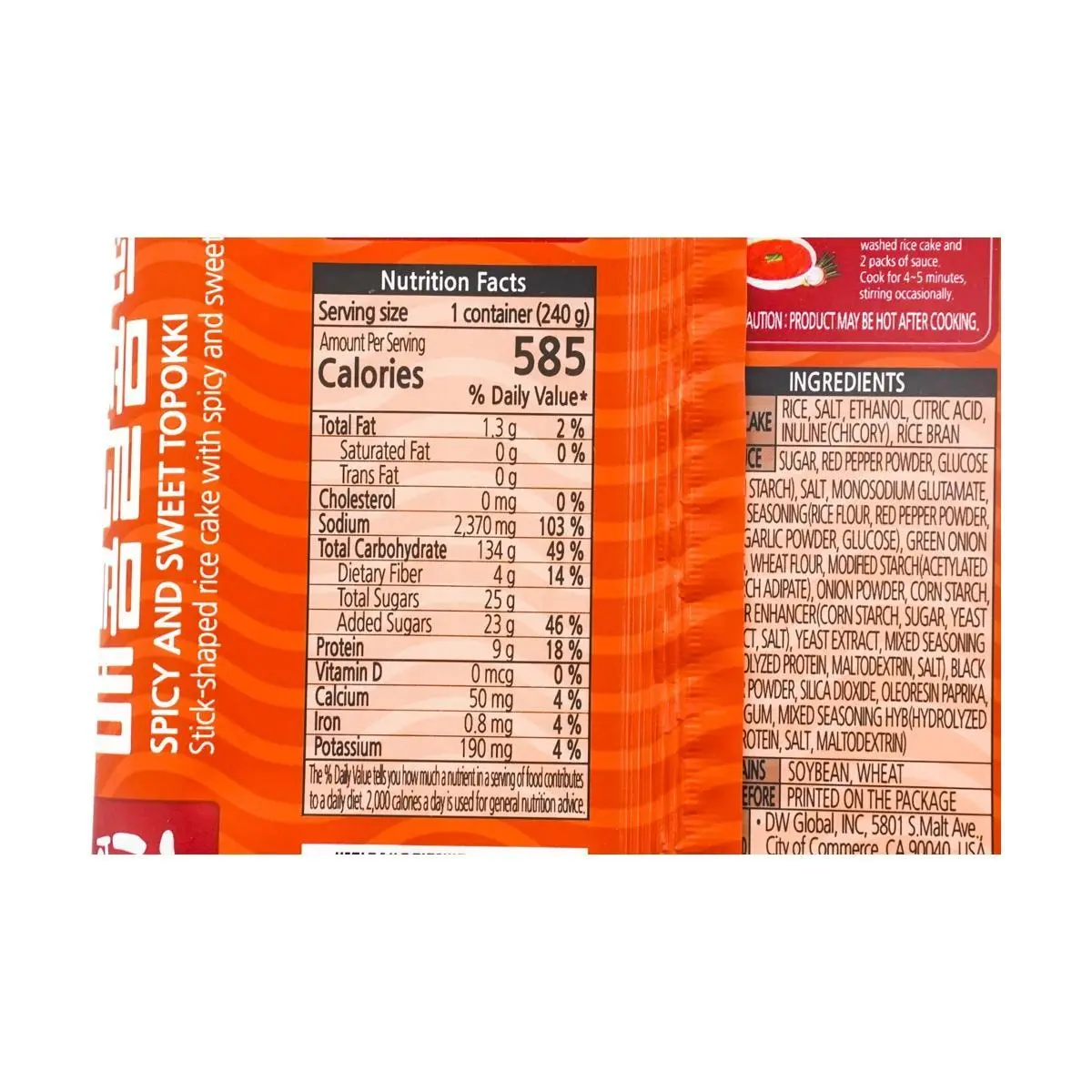 5. DONGWON Sweet and Spicy Tteobboki (Korean Rice Cake), Ready-to-Eat, 8.47 oz
