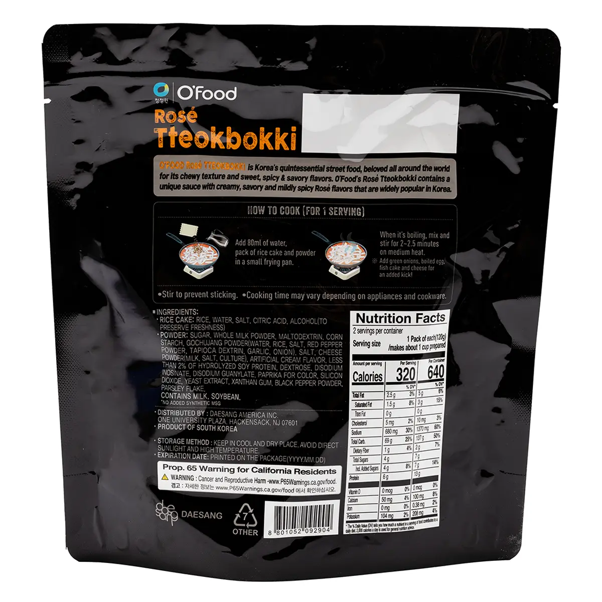 Introducing the CJO O'Food Rose TTEOKBOKKI, a delicious Korean food that is perfect for those who love spicy and savory dishes. This product is made of rice flour, wheat flour, and other ingredients that make it a healthy and nutritious option for your meal. With a weight of 240 g, this product is perfect for sharing with your family and friends.