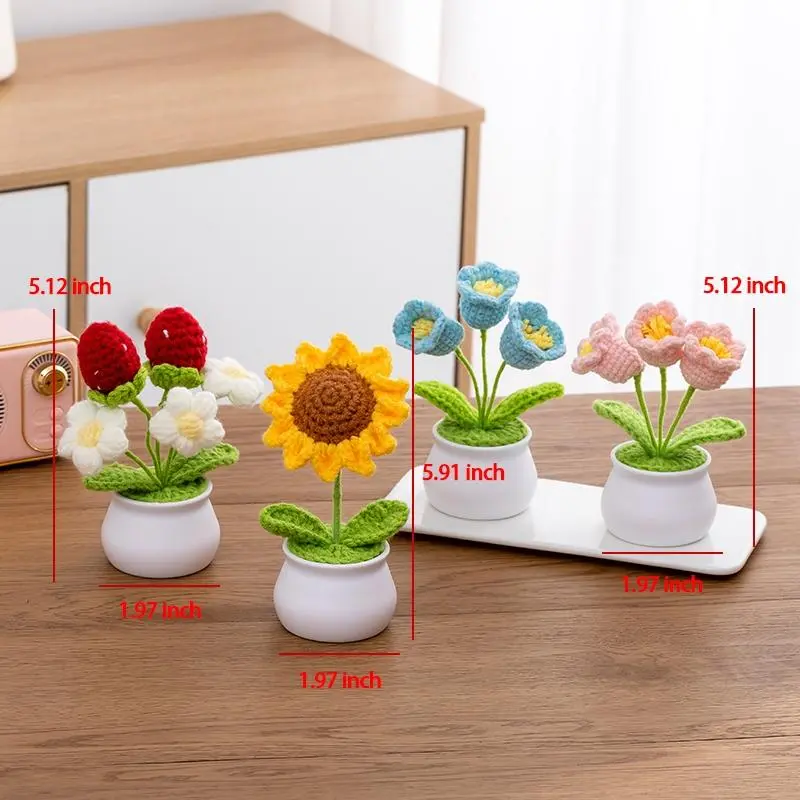 ·Artisanal Knitting Excellence: Skillfully woven from high-quality wool, these crochet potted flowers are 100% handmade, reflecting hours of meticulous craftsmanship and care.