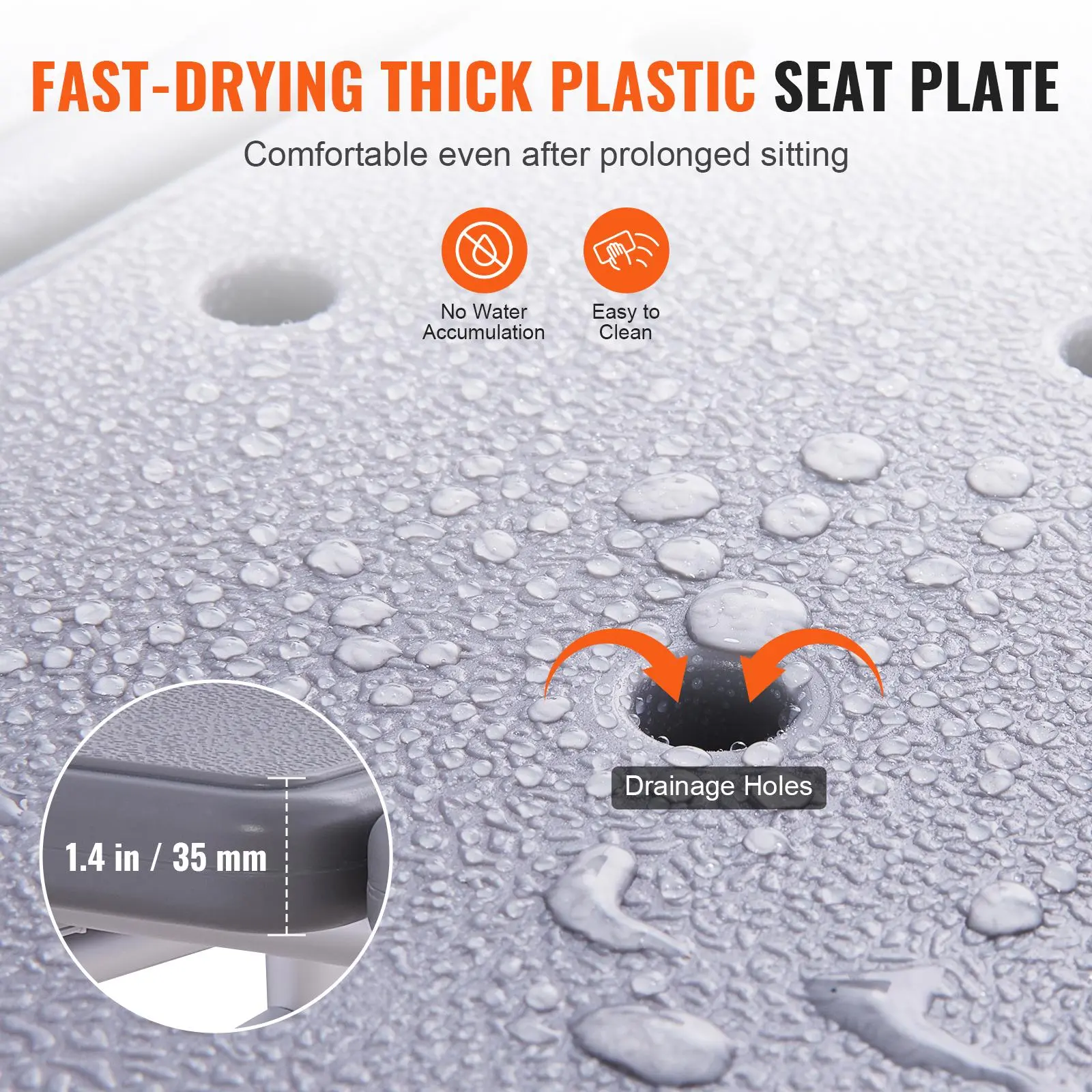 • Comfortable and Quick-Drying Seat: Say goodbye to cold, hard seats! Our reversible backrest and 1.4" thick seat plate, crafted from soft HDPE plastic, provide a cozy and comfortable feel. Featuring multiple drainage holes, it dries quickly and and prevents water buildup. Simply wipe it down after use, easy to clean and maintain!