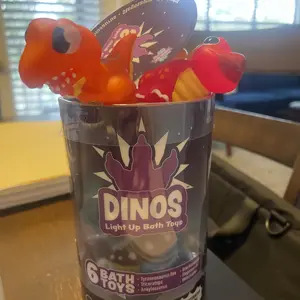 ·FUN IN THE TUB: Brighten up your kids bath with light up bath toys! These soft & squeezable dinosaur toys float in water & feature water-safe lights that flash & change colors when contacting water.