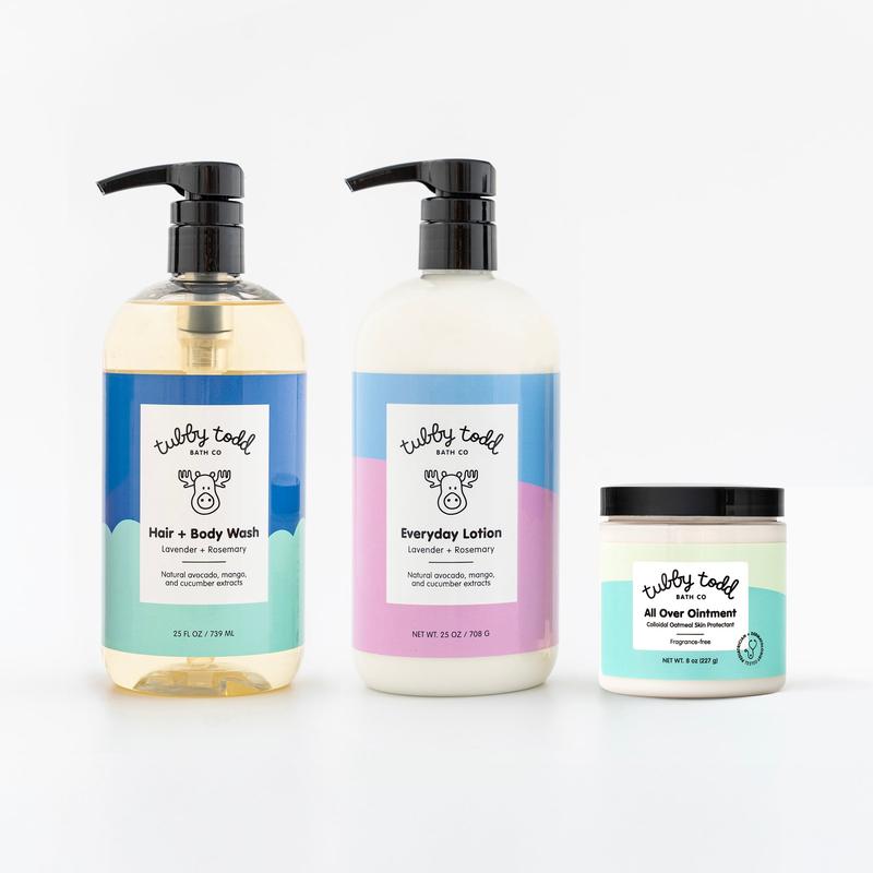 We’ve loved everything so much and have been using the wash and lotion daily. The scent is great, and both are very concentrated, so a little goes a long way. The All Over Ointment has also helped my youngest son’s eczema tremendously — his skin is noticeably less irritated and dry.