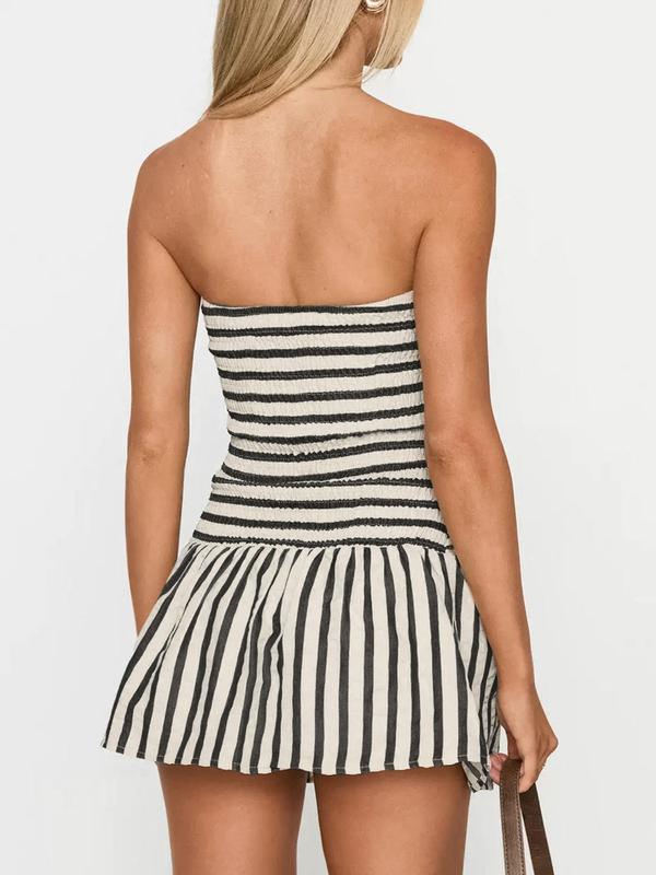 5. Women's Striped Print Tube Romper, Casual Strapless Romper for Summer, Fashion Women's Clothes for Daily Wear