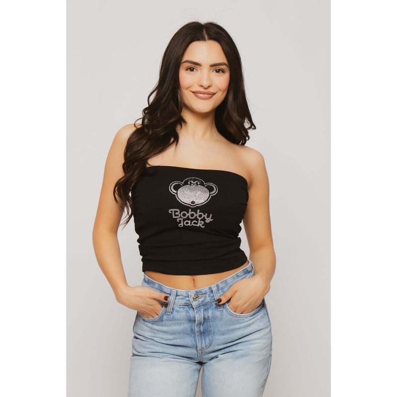 BJ Logo - Bobby Jack Rhinestone Tube Top - Black