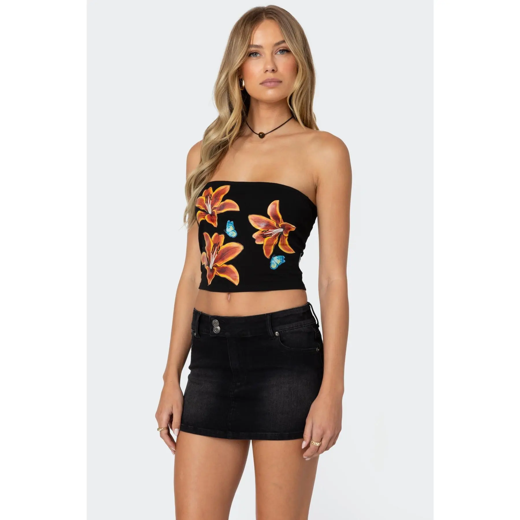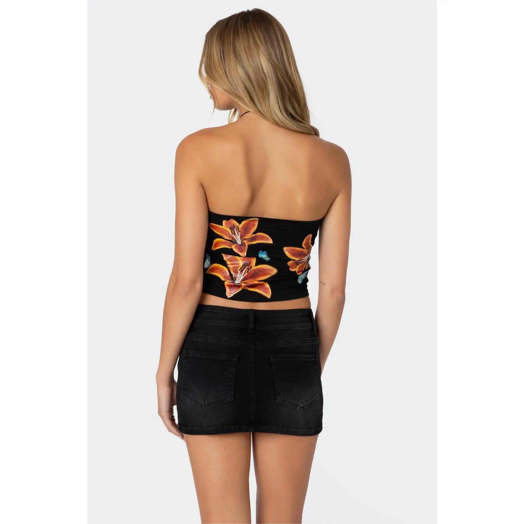 I recently purchased a Tiger Lily tube top, and I am thrilled with it! The fit is true to size. The color is vibrant and exactly as shown in the pictures online. The style is chic and versatile. The tiger lily pattern adds a touch of elegance, while the tube top design keeps it casual and flirty.