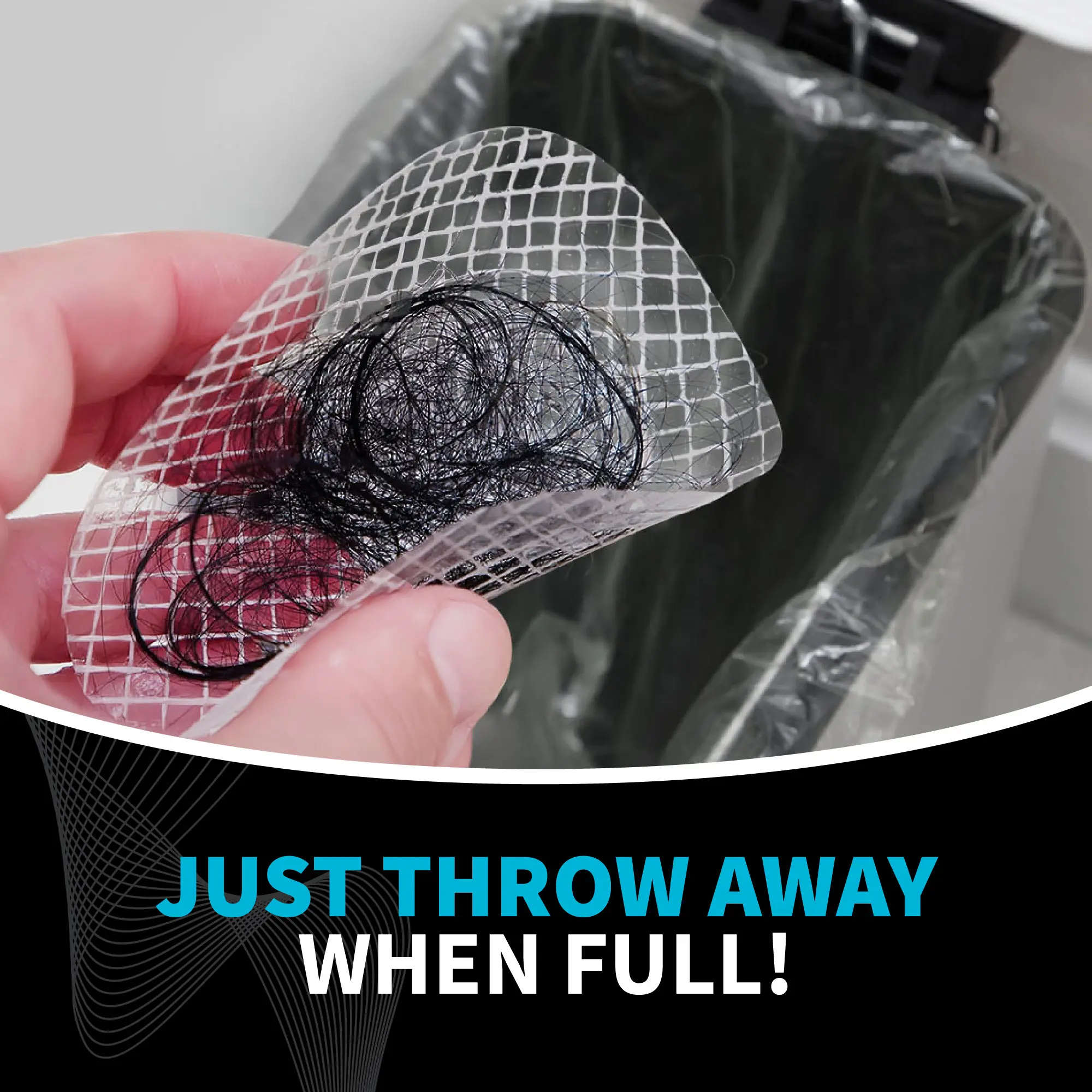 ·DISPOSABLE STRAINER - These truly disposable mesh sticker hair catchers are easy to use and allow you to dispose of the accumulated hair without having to touch the nastiness. Simply peel off the edges and toss it.