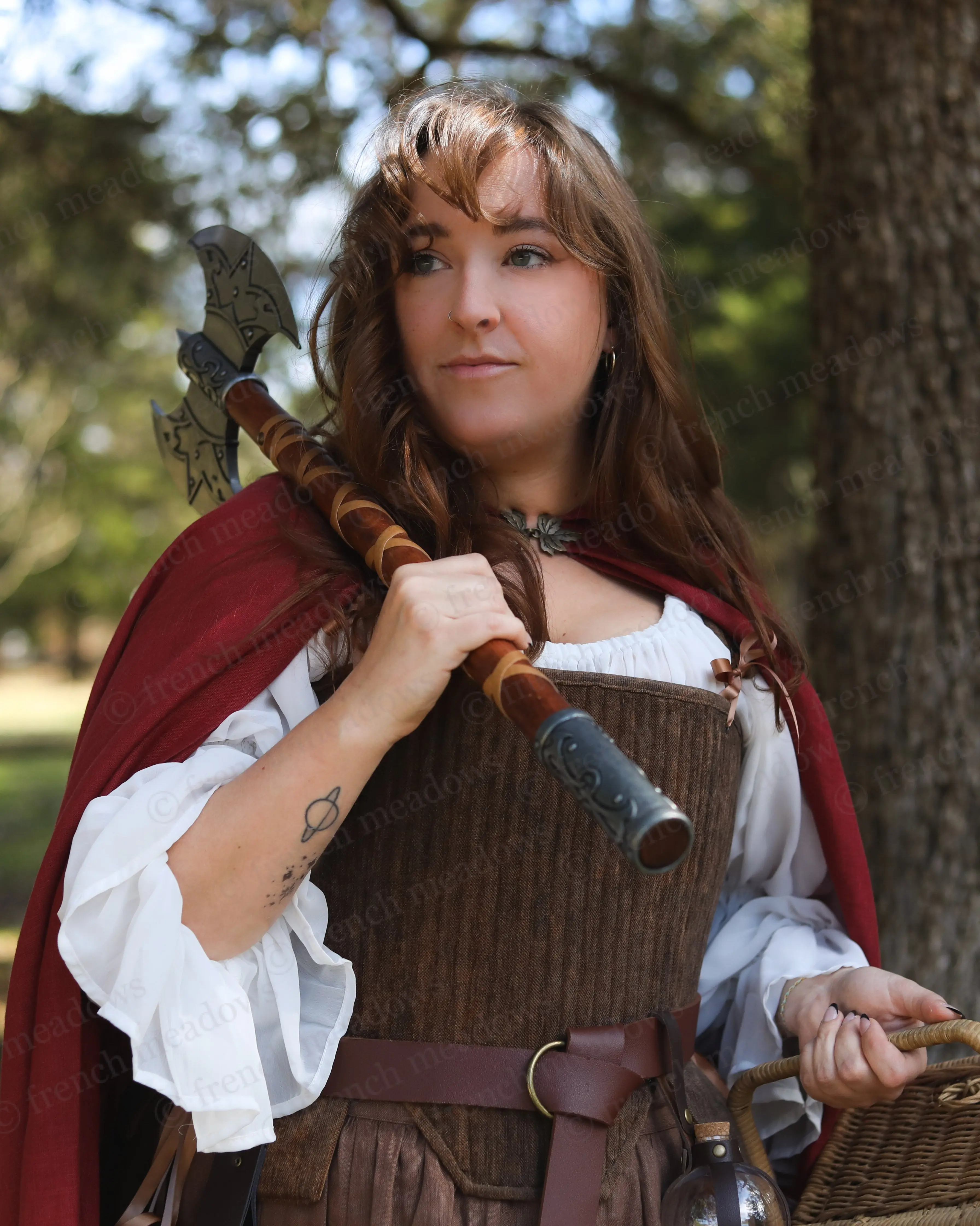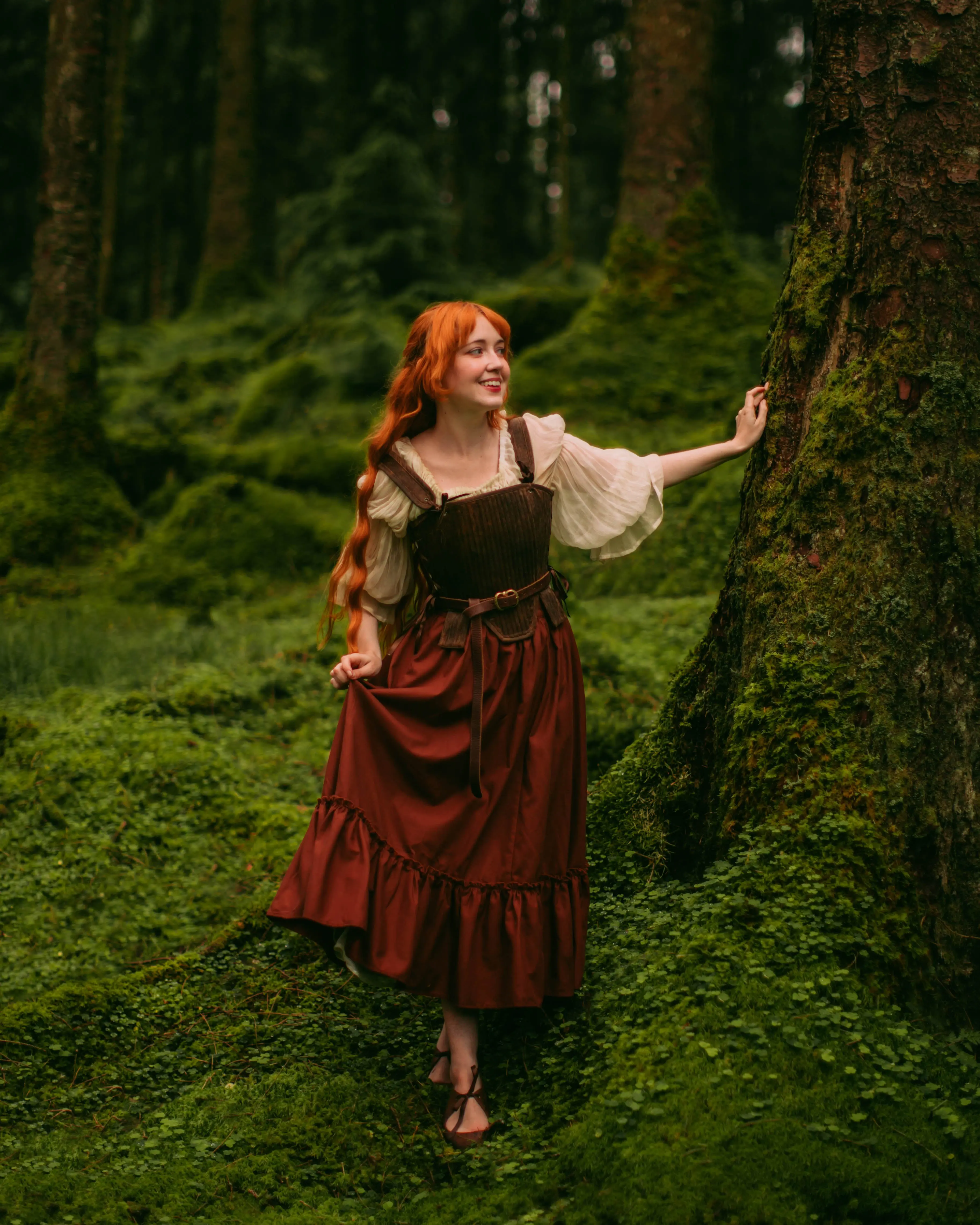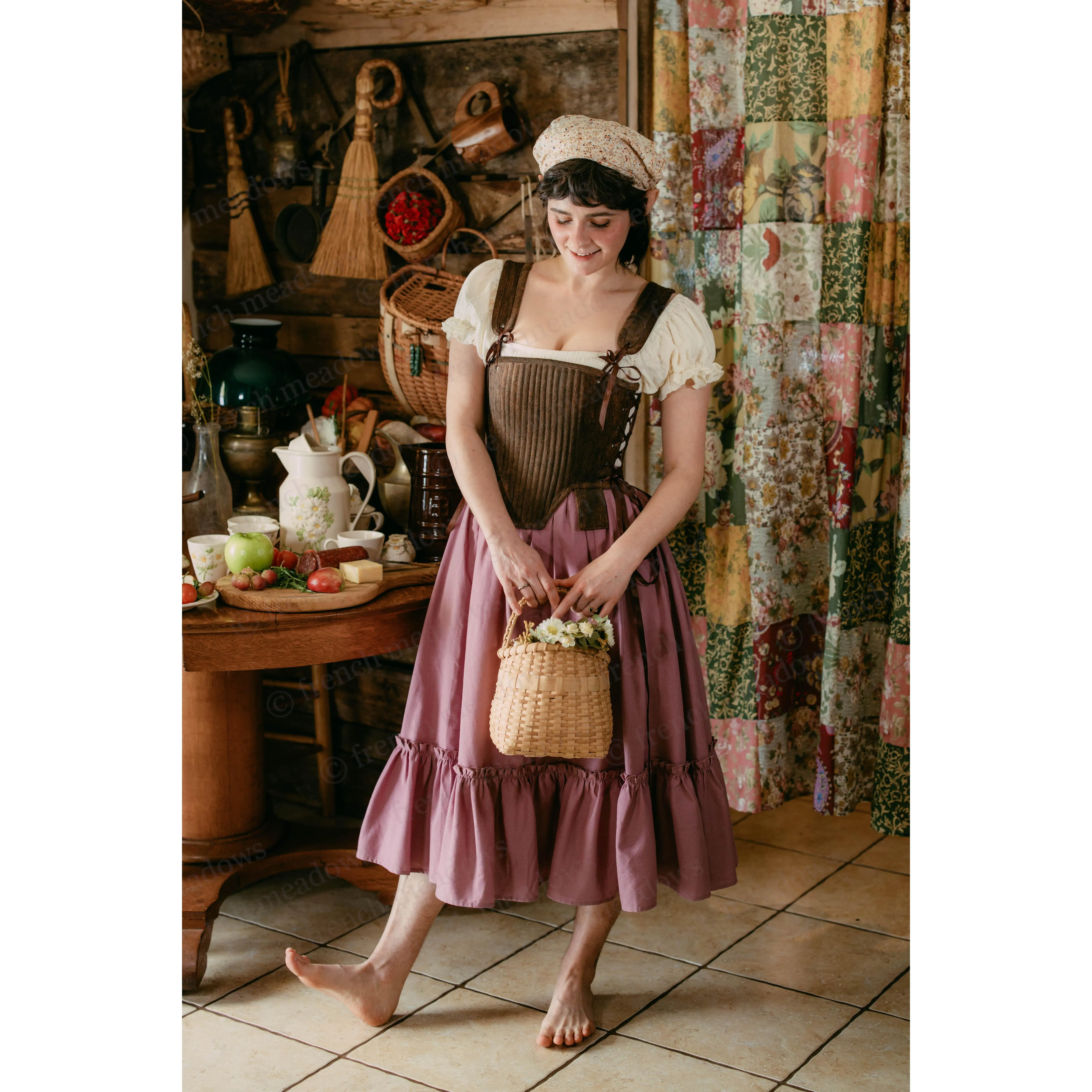 The brown tabbed Tudor stays are my attempt at making a piece that looks like leather armor with fabric! I originally designed these for more of a masc look, but they actually look so cute styled femme as well?! Paired with this brown skirt and the cream milkmaid dress (which is back btw!!) I feel like a little hobbit girl.  This style of corset is the same as the silver stays I showed off earlier this week, and complete with details such as: ~*~ side AND back lacing ~*~ removable shoulder straps ~*~ lots and LOTTSSSS of boning in the front for added bust support Which way would you style it? #medievalfashion #medievalcore #renaissancefaire