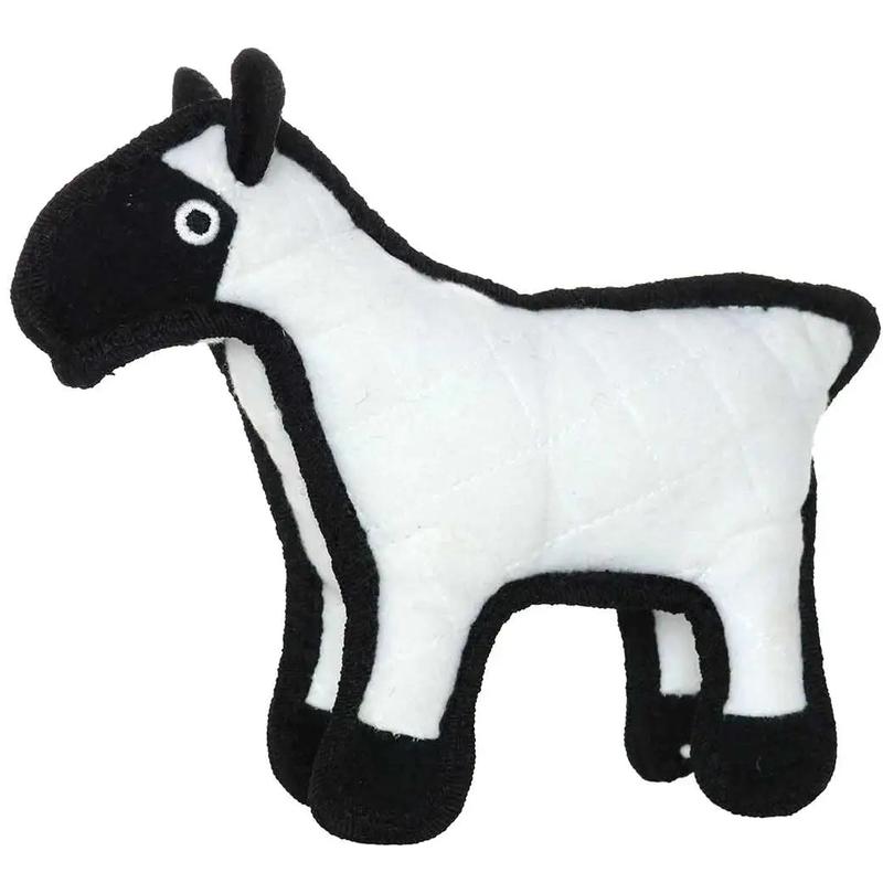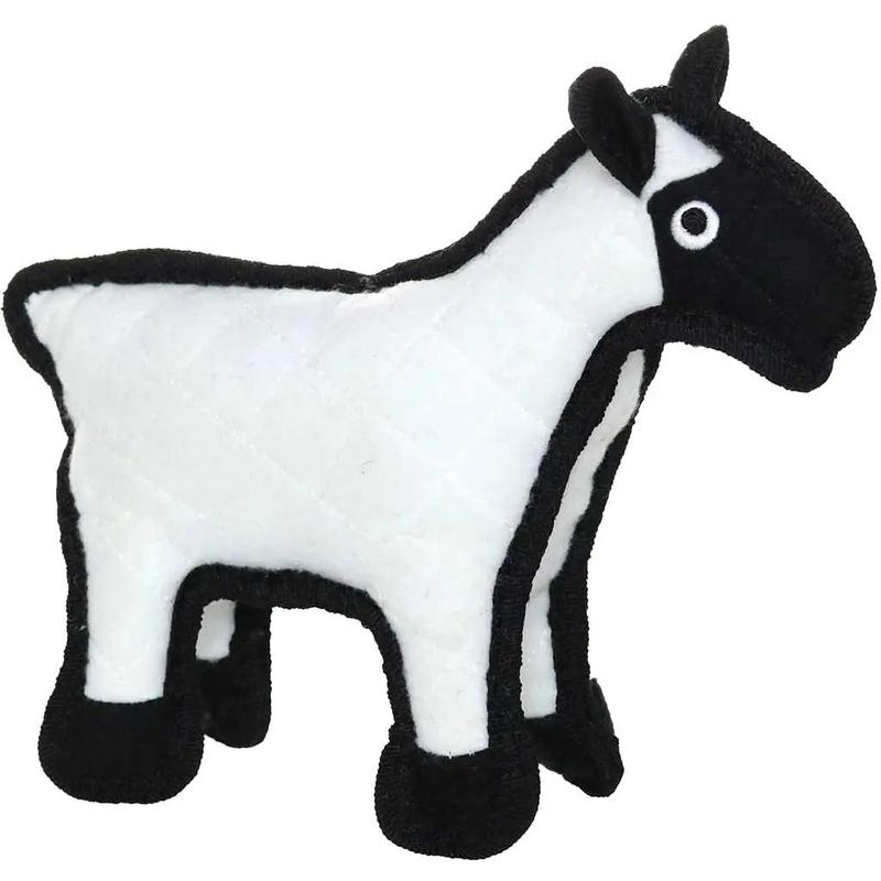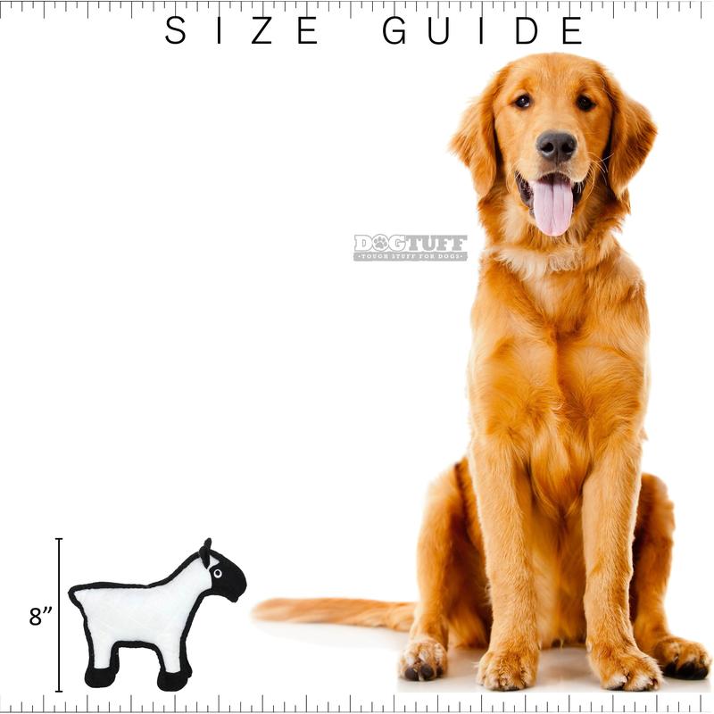 Tuffy Dog Toys Sherman the Sheep JR - I'm not the black sheep of the flock, but somehow I landed this gig. I no longer have my lovely wool turned into shirts and sweaters, nor am I counted as I jump with my friends over your bed. I am better served up as a fuzzy friend to dogs who would prefer to tug and slobber on me rather than wear me. Sherman is the perfect durable companion dog toy. Tuffy's Barnyard Sheep makes the perfect fuzzy companion for your fuzzy friend.  Click here for large Sherman the Sheep.