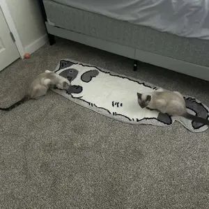 i absolutely love this rug and so do my kitties 😻 super super soft, really good material, and the shipping was fast came in two days ! this is definitely your sign to buy this rug. this rug is 20x60 witch is a nice size for its price range for comparison i’m 5’9 and it goes to my shoulders!