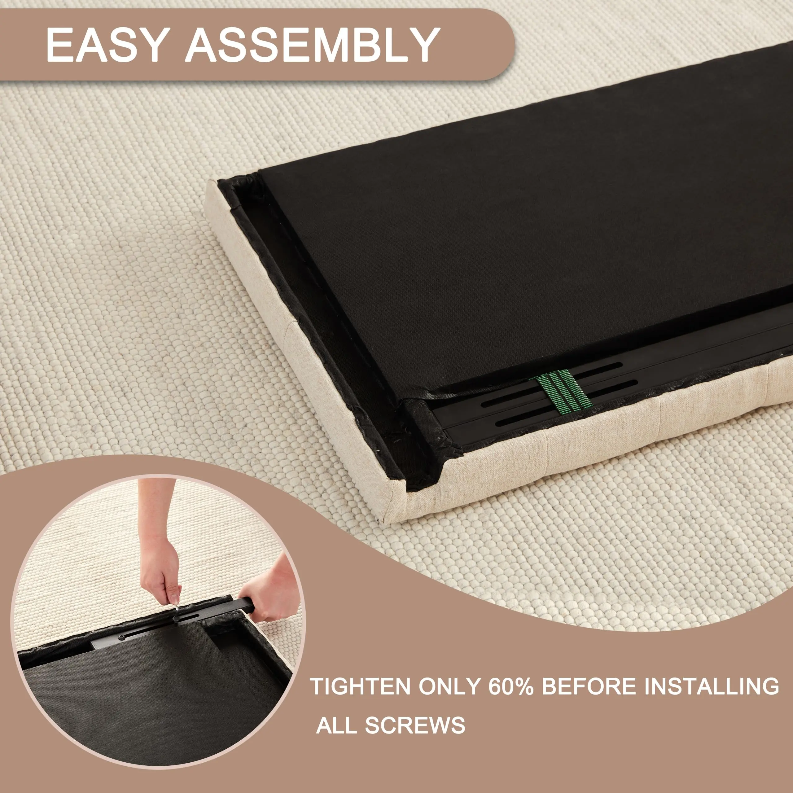 ·Time-Tested Durability: Metal legs replace wooden ones, boosting resilience and deformation resistance. High-quality screws and a solid wood frame ensure stability and durability, making this queen size headboard only a reliable long-term companion