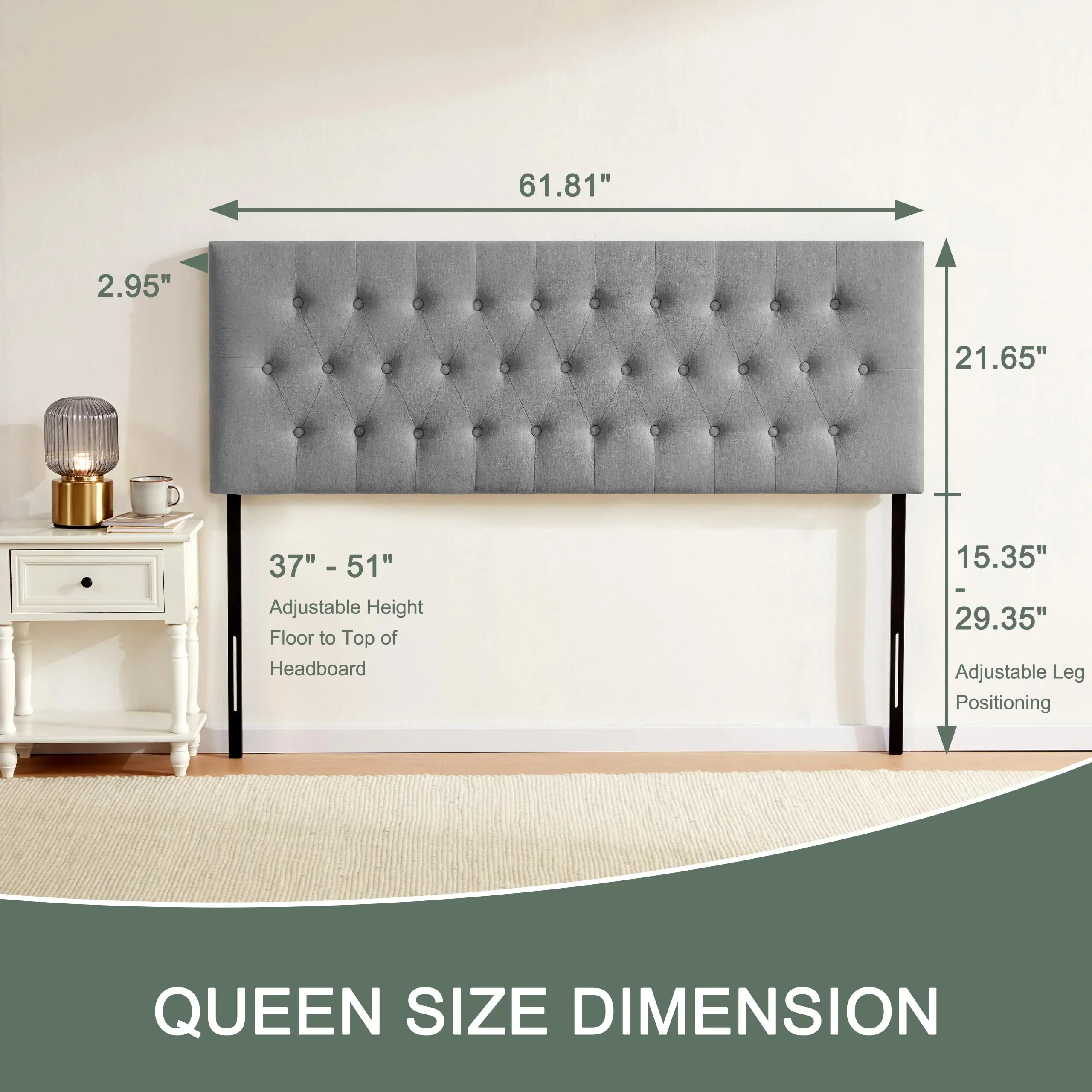 ·Modern Design: Featuring tufted buttons, this queen headboard only adds elegance and a modernity touch. Available in gray; beige; and black, our head boards queen immerse any room in a serene and comfortable vibe. Ideal for your bedroom or guest room