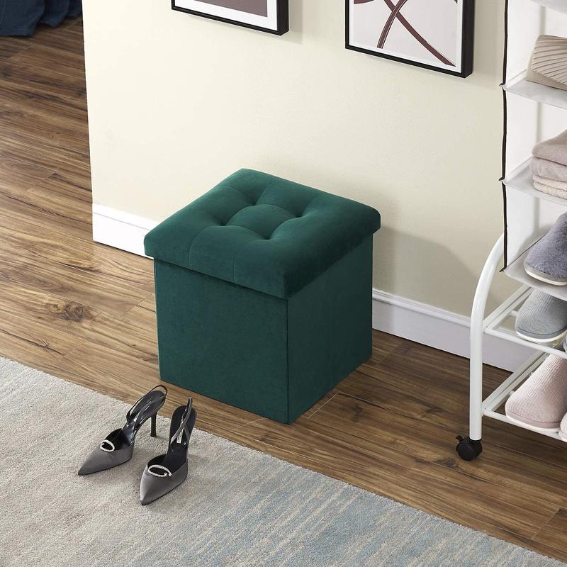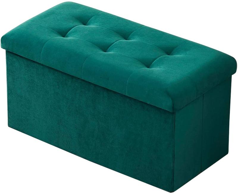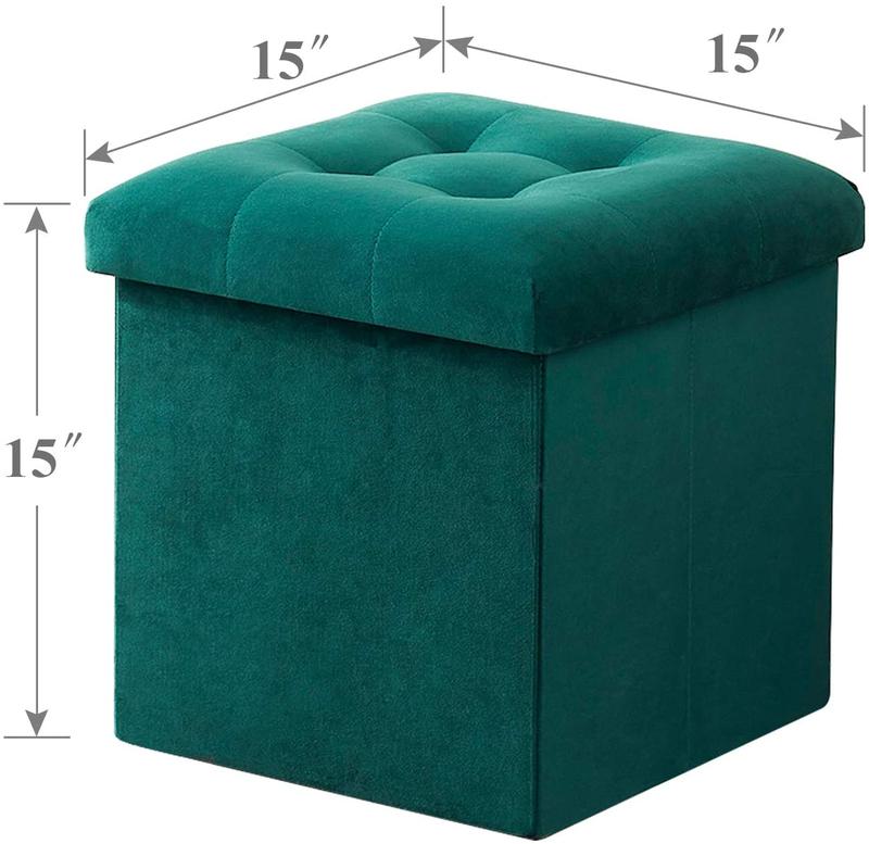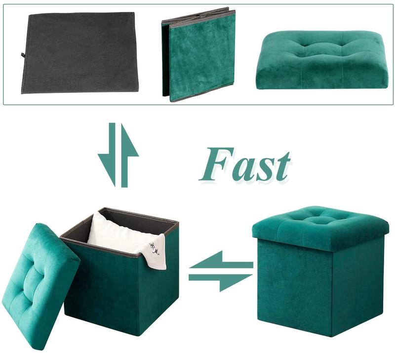 Product Dimensions 15"D x 15"W x 15"H/15"D x 30"W x 15"H Color Grey/Green Top Material Type Velvet Brand VECELO Fabric Type Fabric Base Type Legs Shape Rectangular Seat Height 15 Inches Item Weight 7.7 Pounds Maximum recommended load 100 Kilograms About this item Fabric Hight Quality Frabic: Auality craftsmanship using expert stitching techniques and high-quality velvet Tufted Bonded. Very soft and durable. Can add luster to your room and bring a luxurious feeling to your decoration. Hidden Storage: Provides a spacious hidden storage with enough room to store sundries where you can store books, magazines, clothes, blankets, shoes, toys or other sundries in your bedroom, living room, hallway or guest-room, etc. All-Match Style Multipurpose/Space-Saving: With a elegant appearance, it’s an expression of the concept of fashion. It can be used as a shoe changing stool, storage stool, bed end stool, dressing stool, and living room extra stool. Can be folded up when you don’t need it to provide more space for your daily activities. LIGHTWEIGHT No Assembly: Measured by 15Lx15 W x 15H inches. Convenient design ensures no any assembly designed making this ottoman easy to move yet sturdy & comfortable for sitting. Quality Assurance: We Guarantee our customers satisfaction with our high quality of Footstool . If there are any problems, just email us and get a New Replacement.
