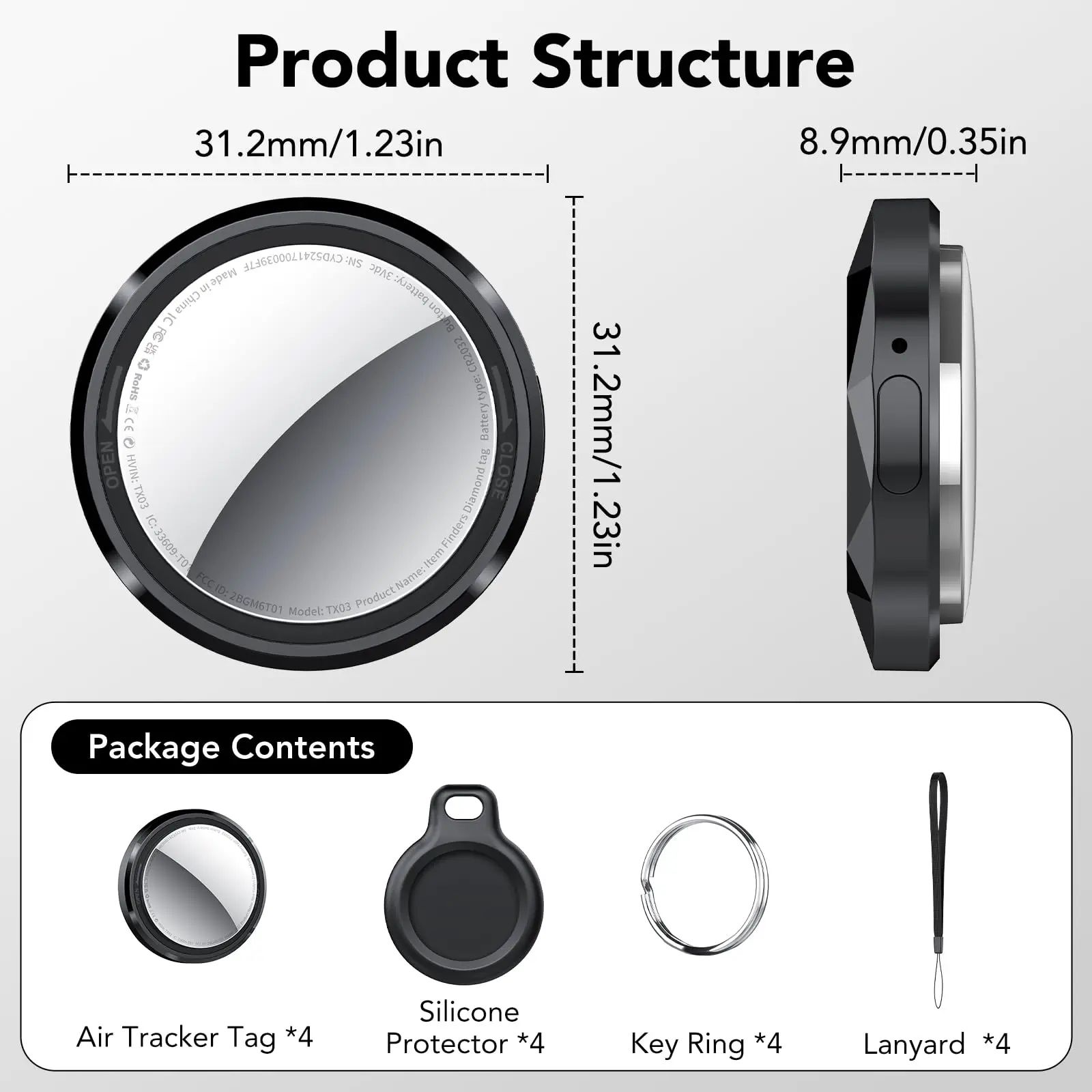 ✨ Stay Connected with TUKIO Tx03! This mini clear design device features a weatherproof case and anti-lost functionality. It works with Apple Find My (iOS only) without monthly fees. The IP67 rating ensures protection against 3-foot water immersion. Replace the CR2032 battery for up to a year of use.