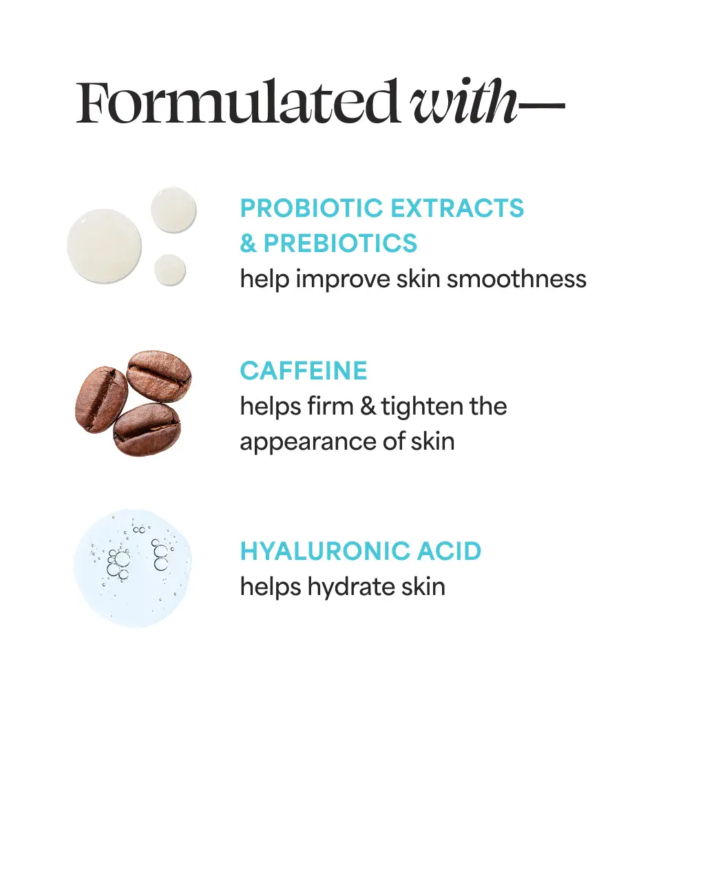 | Ingredients | Aqua/Water/Eau,Propanediol,Aloe Barbadensis Leaf Juice,Sodium Stearate,Xylitol,Mica,Oleth-20,Lactococcus Ferment Lysate,Glycerin,Caffeine,Hyaluronic Acid,Rosa Canina (Hip Rose) Fruit Oil,Rosa Centifolia (Cabbage Rose) Flower Water,Citrullus Lanatus (Watermelon) Fruit Extract,Pyrus Malus (Apple) Fruit Extract,Vaccinium Corymbosum (Blueberry) Fruit Extract,Lactobacillus,Lactobacillus Ferment,Alpha-Glucan Oligosaccharide,Beta Vulgaris (Beet) Root Extract,Curcuma Longa (Turmeric) Root Extract,Inulin,Lens Esculenta (Lentil) Fruit Extract,Lactic Acid,Menthyl Lactate,Sodium PCA,Menthone Glycerin Acetal,Diheptyl Succinate,Capryloyl Glycerin/Sebacic Acid Copolymer,Xanthan Gum,Ethylhexylglycerin,Sodium Lactate,Sodium Benzoate,Phenoxyethanol,Sodium Chloride,Citric Acid,Tocopherol,1,2 Hexanediol,Butylene Glycol,Calcium Alginate,Caprylyl Glycol,Lecithin,Maltodextrin,Polymnia Sonchifolia (Yacon) Root Juice,Pterocarpus Marsupium (Indian Kino Tree) Bark/Wood Extract,Sodium Citrate,Sodium Hydroxide,Potassium Sorbate,Titanium Dioxide (CI 77891),Iron Oxides (CI 77499),Iron Oxides (CI77492),Iron Oxides (CI 77491) |