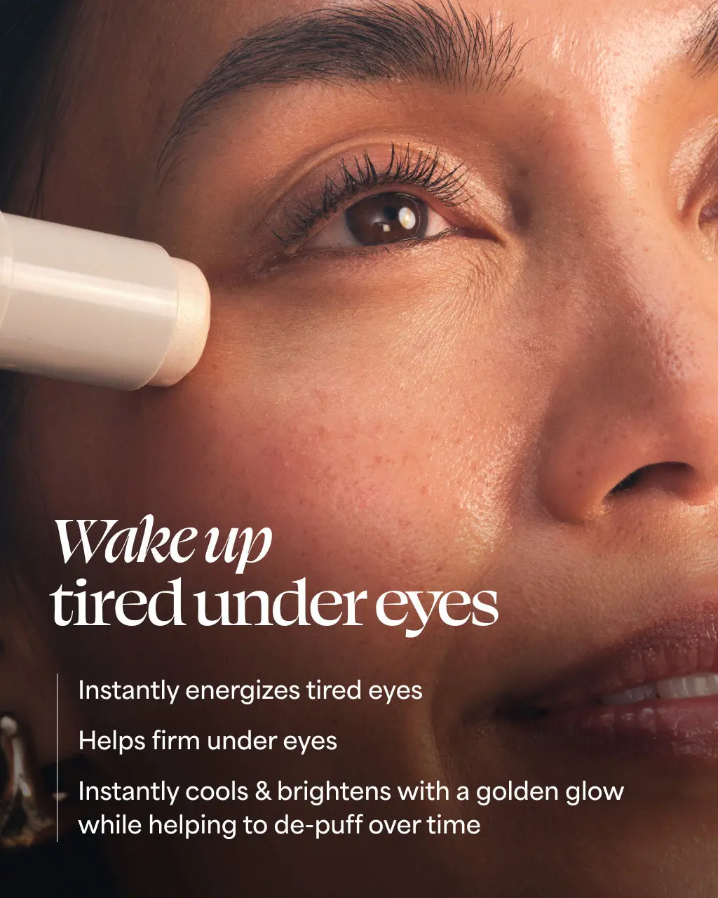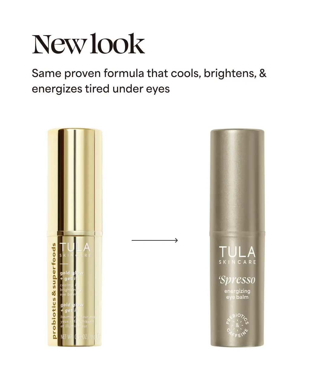 An espresso shot for your under eyes! Caffeine-infused eye balm with a golden glow. Instantly cools and energizes for a wide-awake look. Helps firm tired under eyes. New look, same best-selling formula!