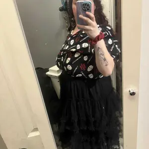 Layered black tulle skirt with lining on the inside. Just a little longer than midi length.