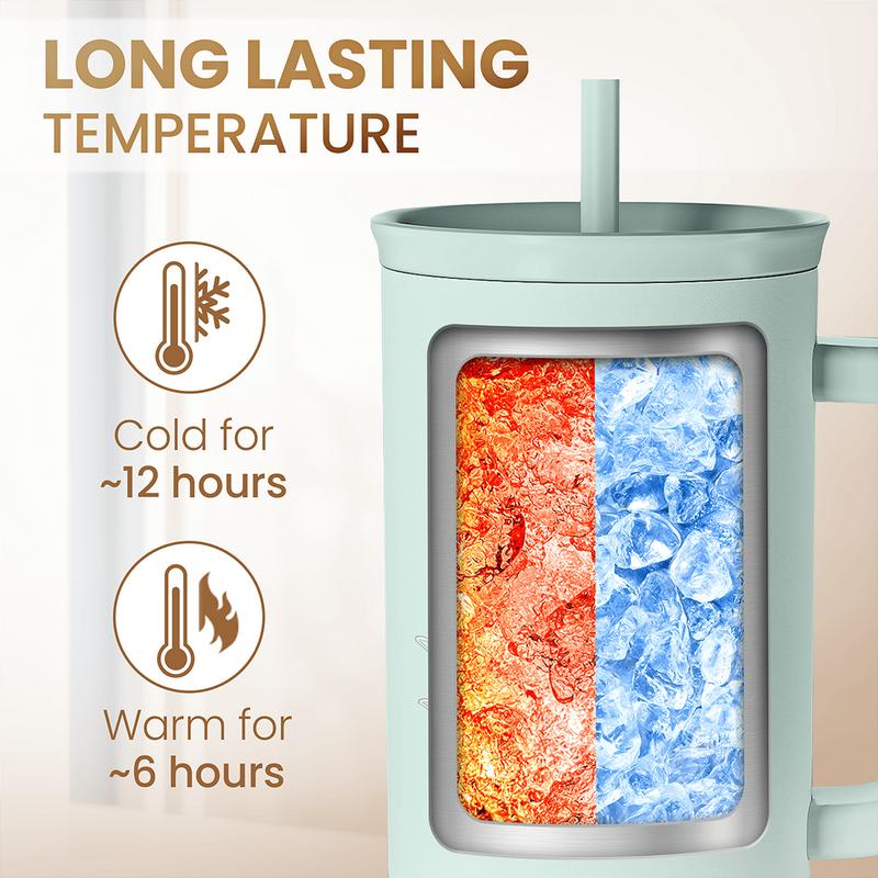 ·Your New Favorite Tumbler: Whether you need a hot cup of morning coffee or a cold, refreshing drink, this Sandjest 40oz tumbler has you covered. Featuring double-walled, vacuum-insulated technology, it keeps beverages cold for up to 12 hours and hot for up to 6 hours. The flexible straw makes sipping easy from any angle. Perfect for everyday use—at the gym, school, office, hiking, or in your car’s cup holder.