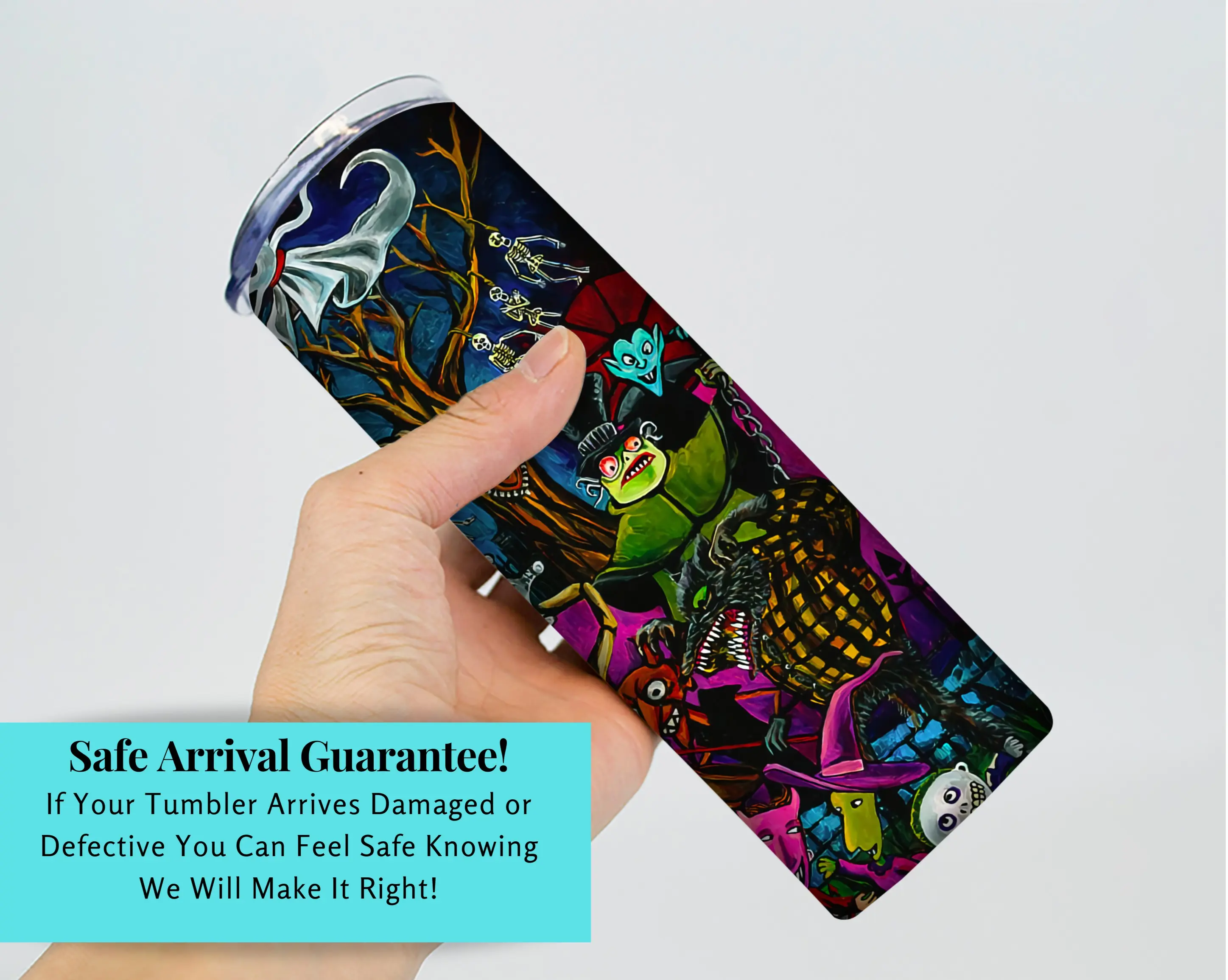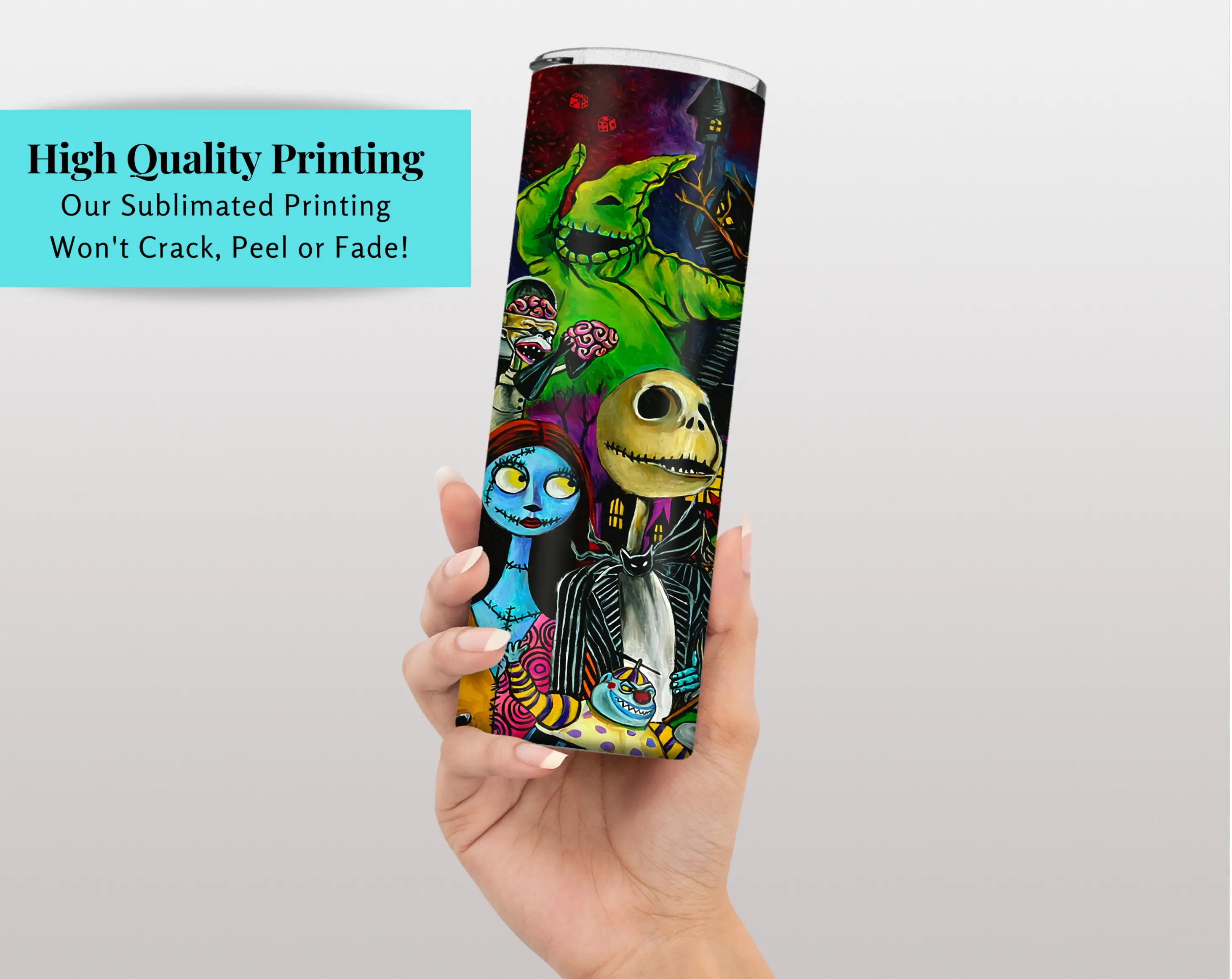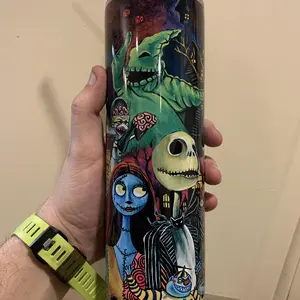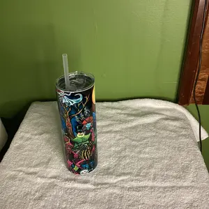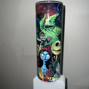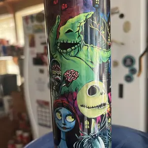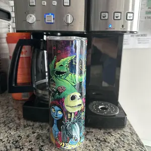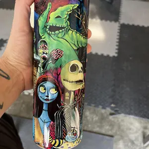 Our tumbler designs are printed then transferred to the tumblers using the sublimation process. This means we do not use any epoxy, vinyl or real glitter.