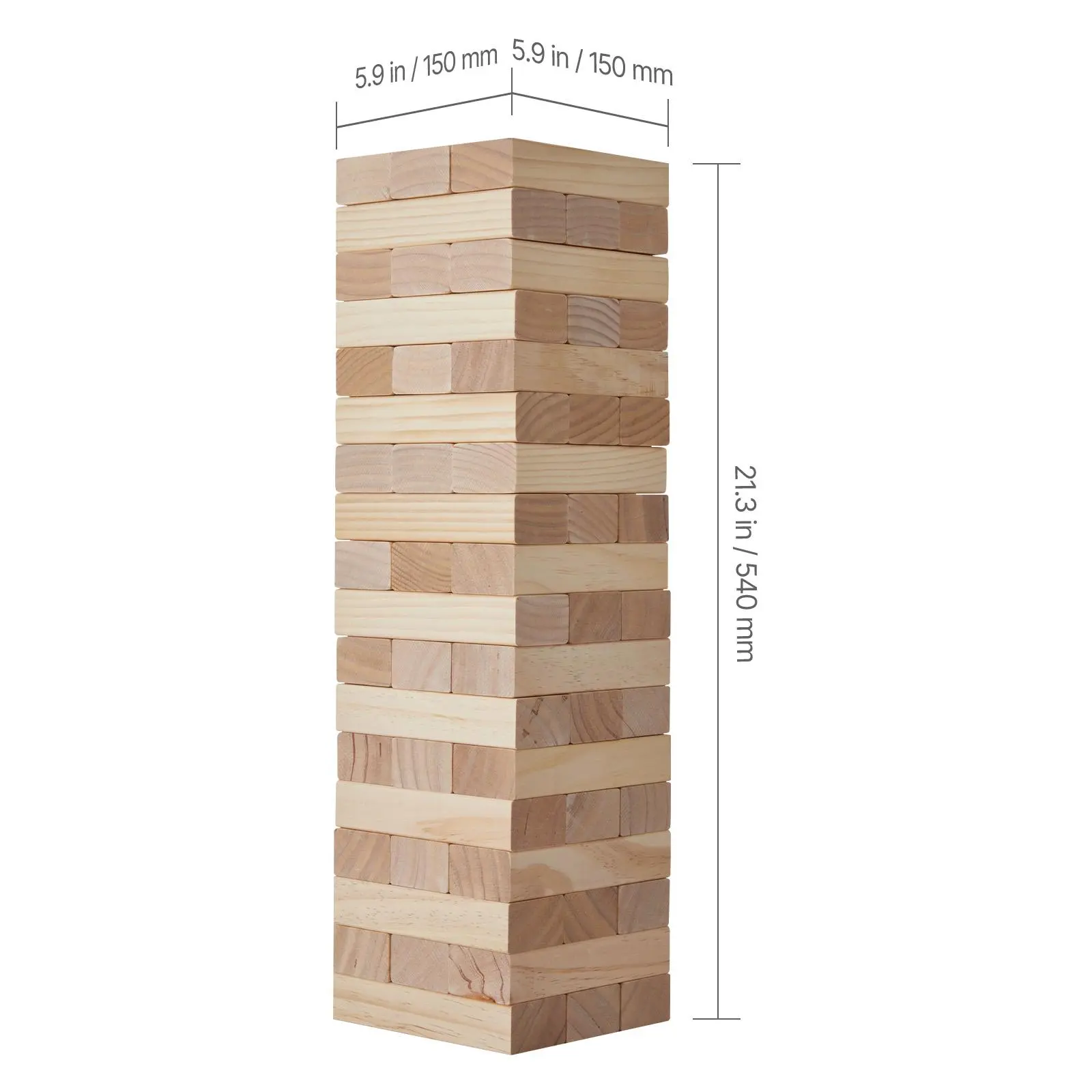 • Premium Pinewood: Crafted from high-quality pine wood, this tumble tower blocks game is durable and built to withstand heavy play. Each block is precisely cut, smooth, splinter-free, and crack-free, making it easy to remove blocks during the game.