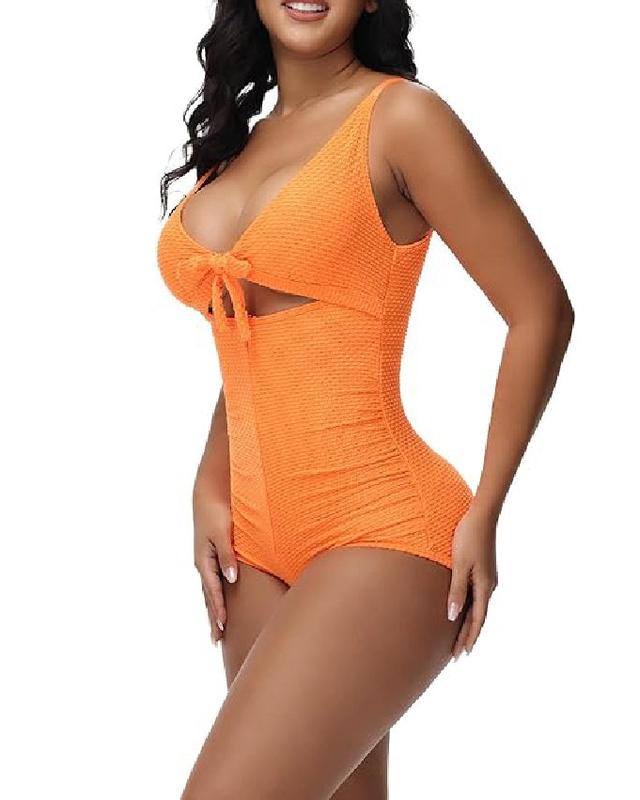 ·Adjustable Cut-Out Front Tie Knot:This one-piece bathing suit offers removable cups on 100% adjustable bust.that shows off your perfect breast shape, creating a classicand sophisticated look.This sleeveless bodysuit has acomfortable and light cut that helps highlight yourbeautiful lines in the area without adjustment.