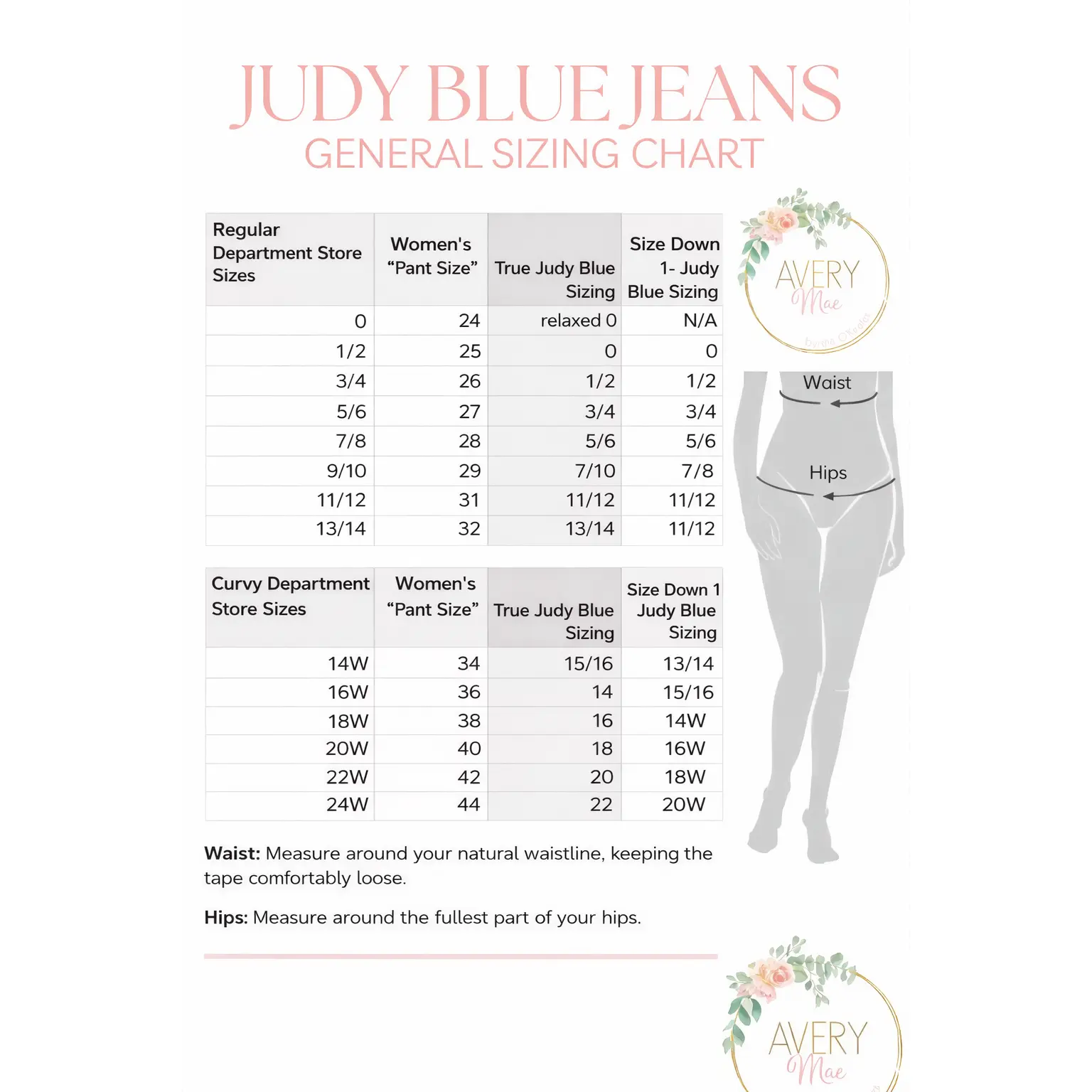 📊 Judy Blue Denim Size Guide